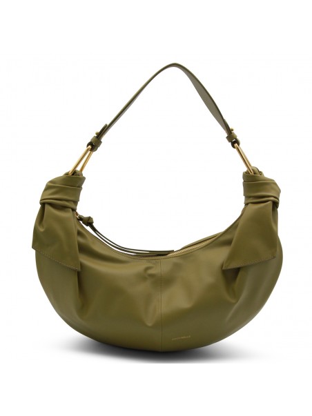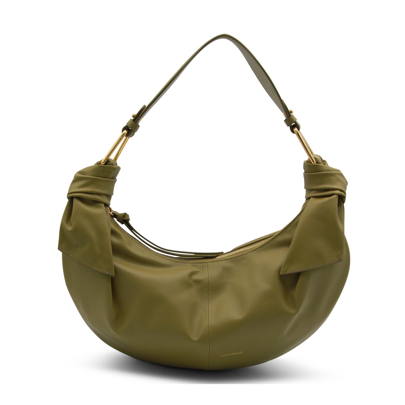 Seagrass leather Furoshiki medium shoulder bag from Coccinelle featuring zip fastening, gold tone hardware, logo, shoulder strap, details and internal zipped pocket.