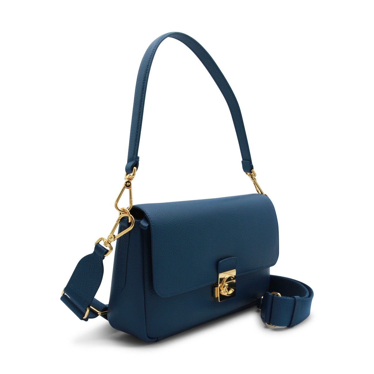 DEEP BLUE LEATHER C-ME LOCK SHOULDER BAG