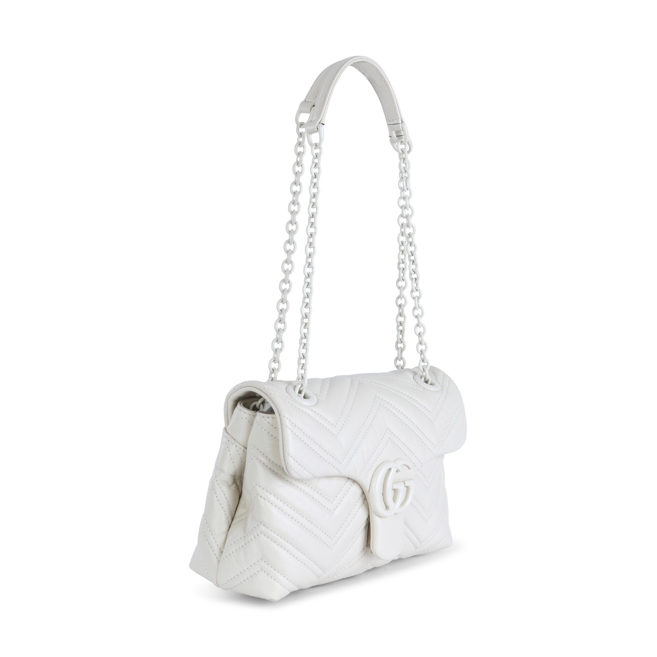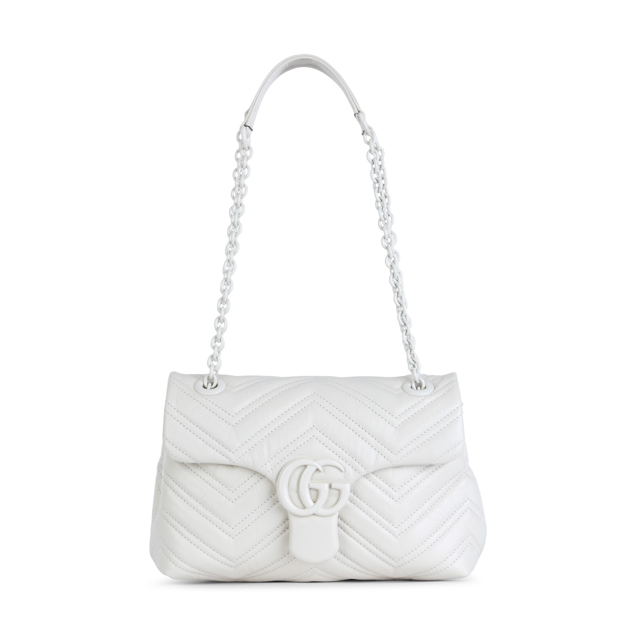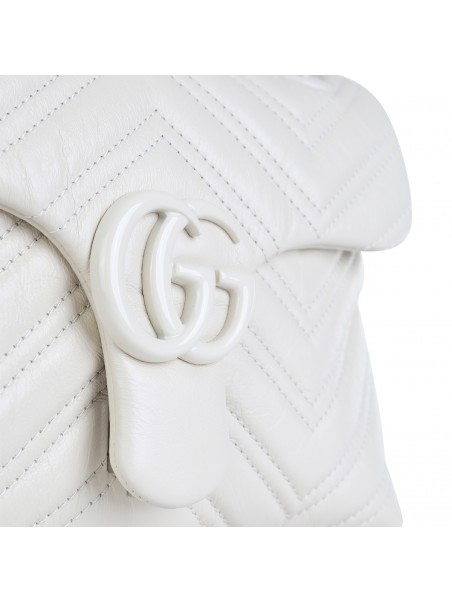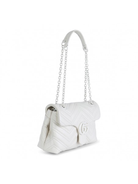 White leather shoulder bag from Gucci featuring top handles, main compartment, padded, frontal logo and black tone hardware.