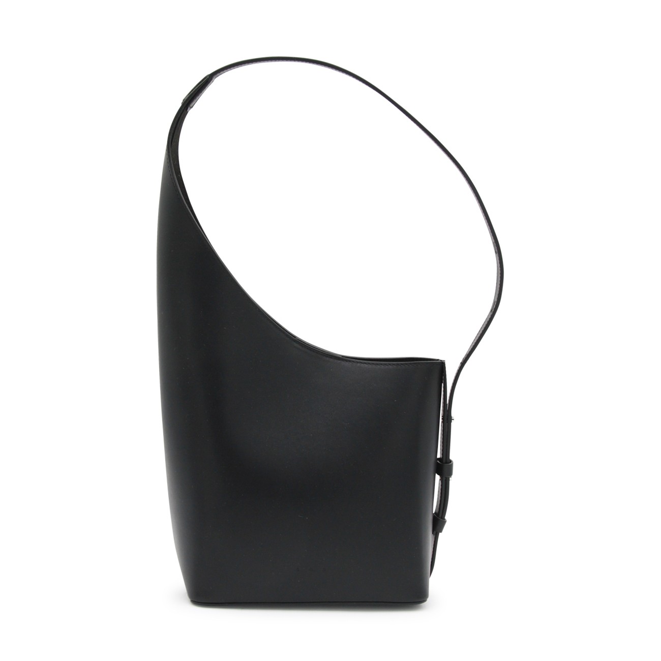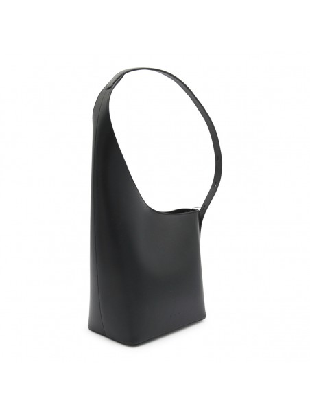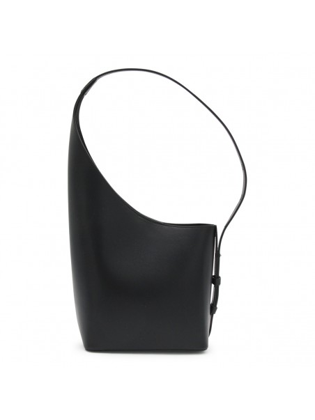 Black leather Demi Lune Shoulder bag from Aesther Ekme featuring top handle, upper fastening and inside pocket.