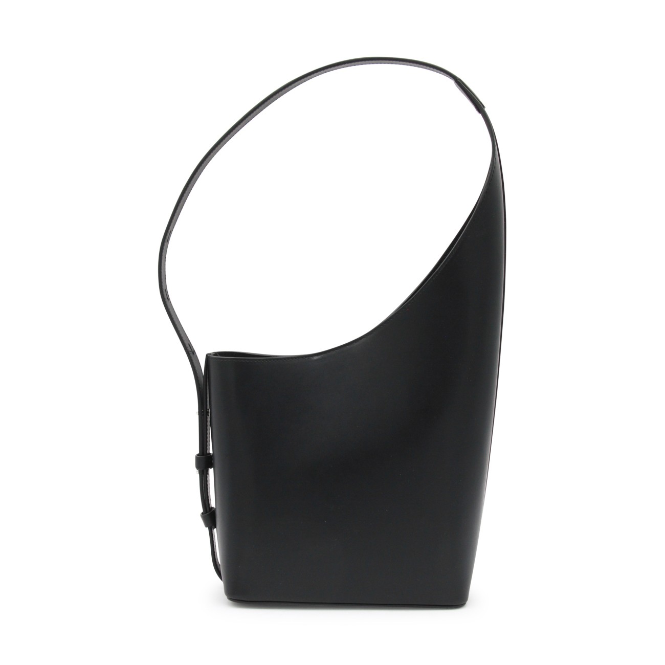 BLACK LEATHER DEMI LUNE SHOULDER BAG