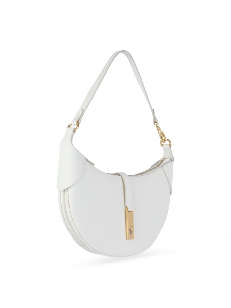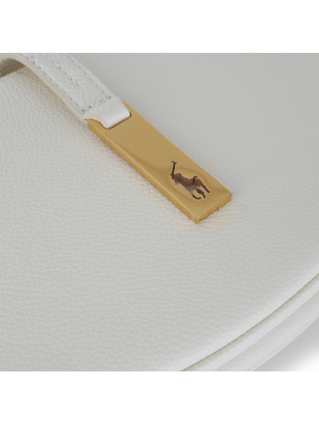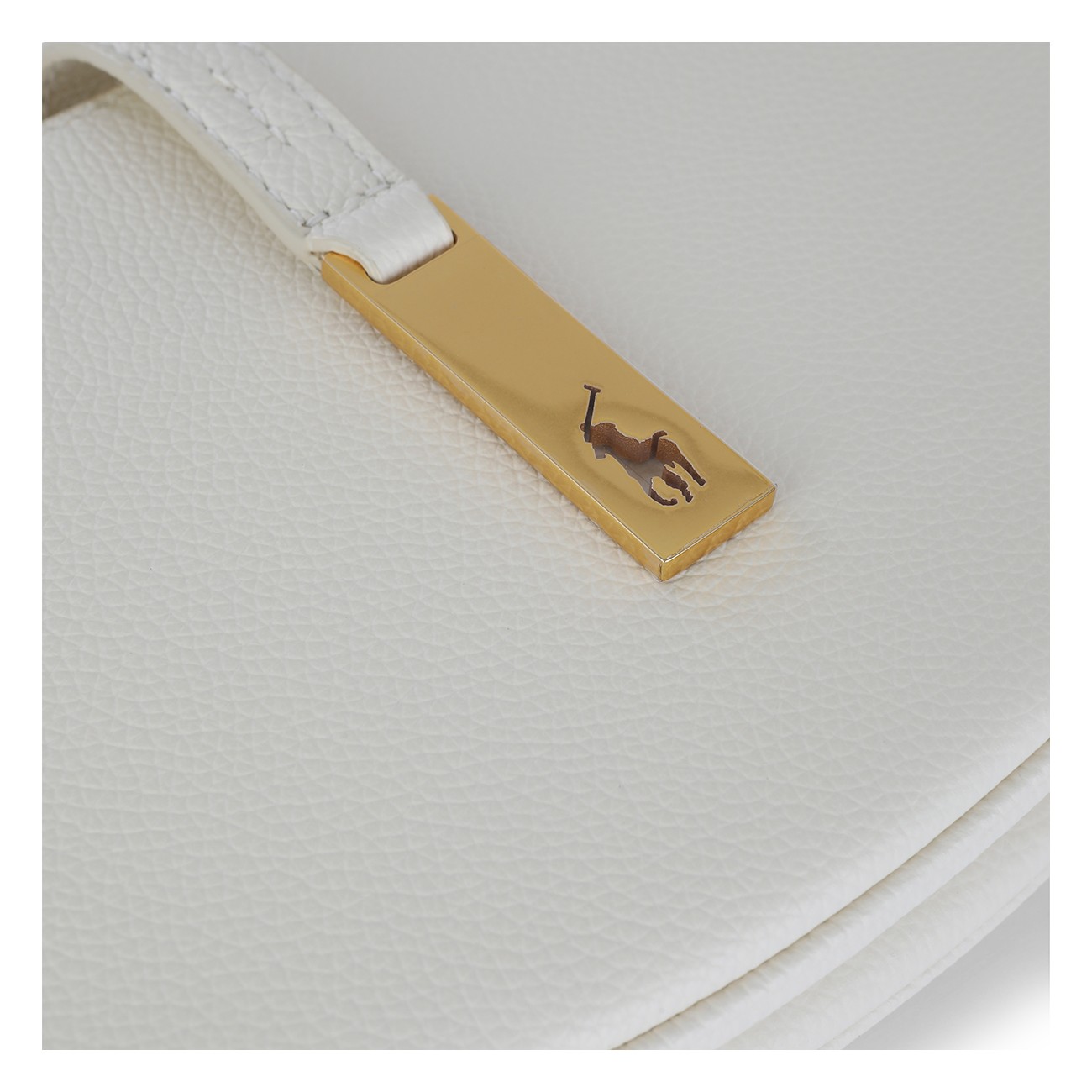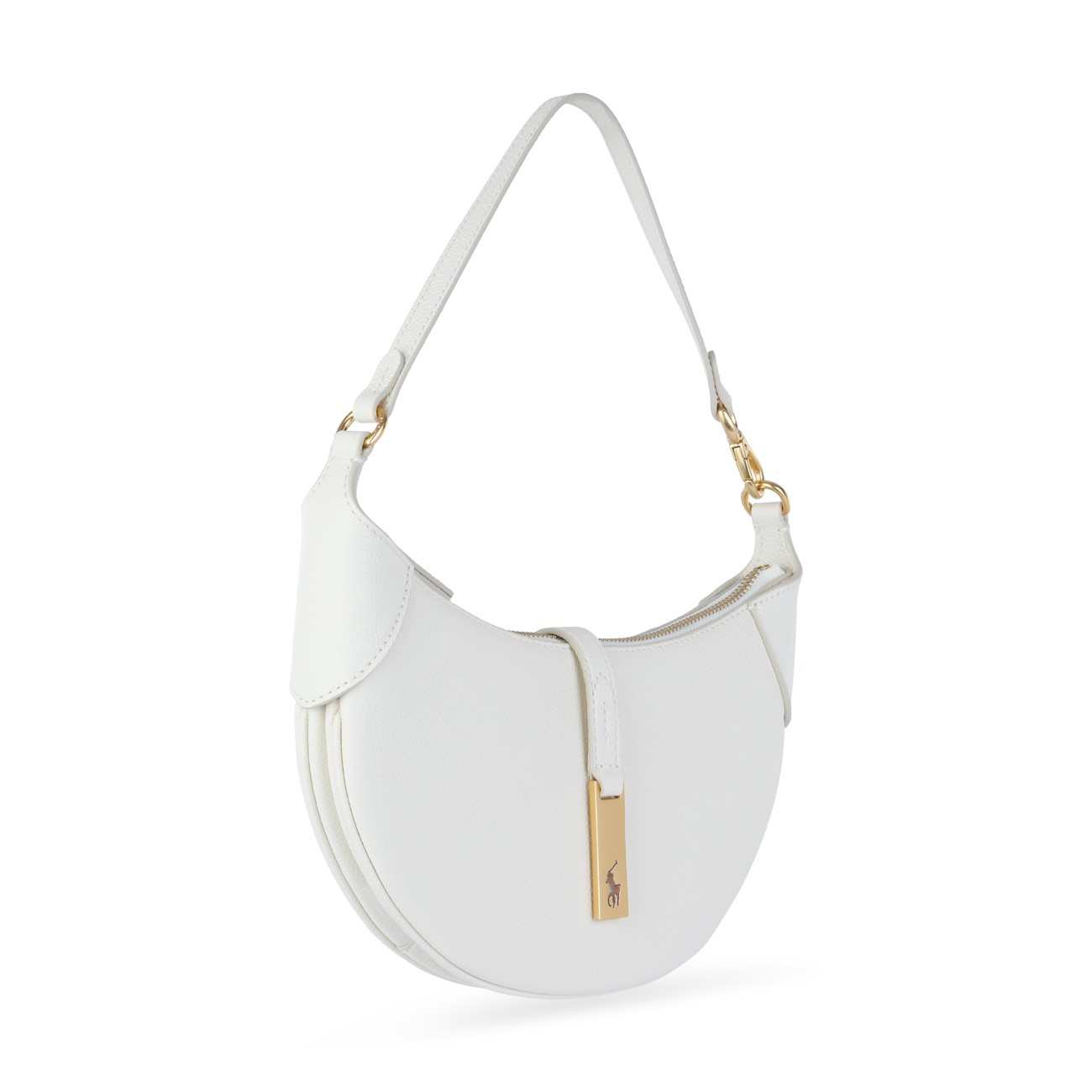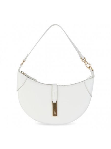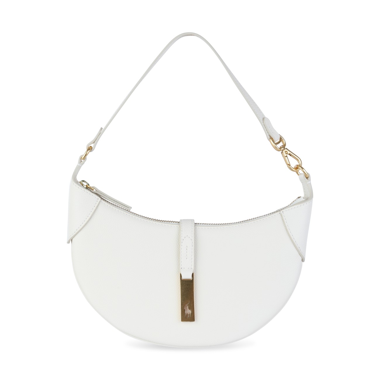 Ivory leather Polo ID shoulder bag from Polo Ralph Lauren featuring gold tone metal hardware, zip closure, detachable shoulder strap, logo details and zipped pocket.