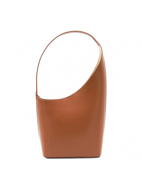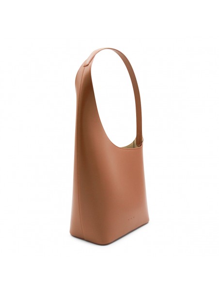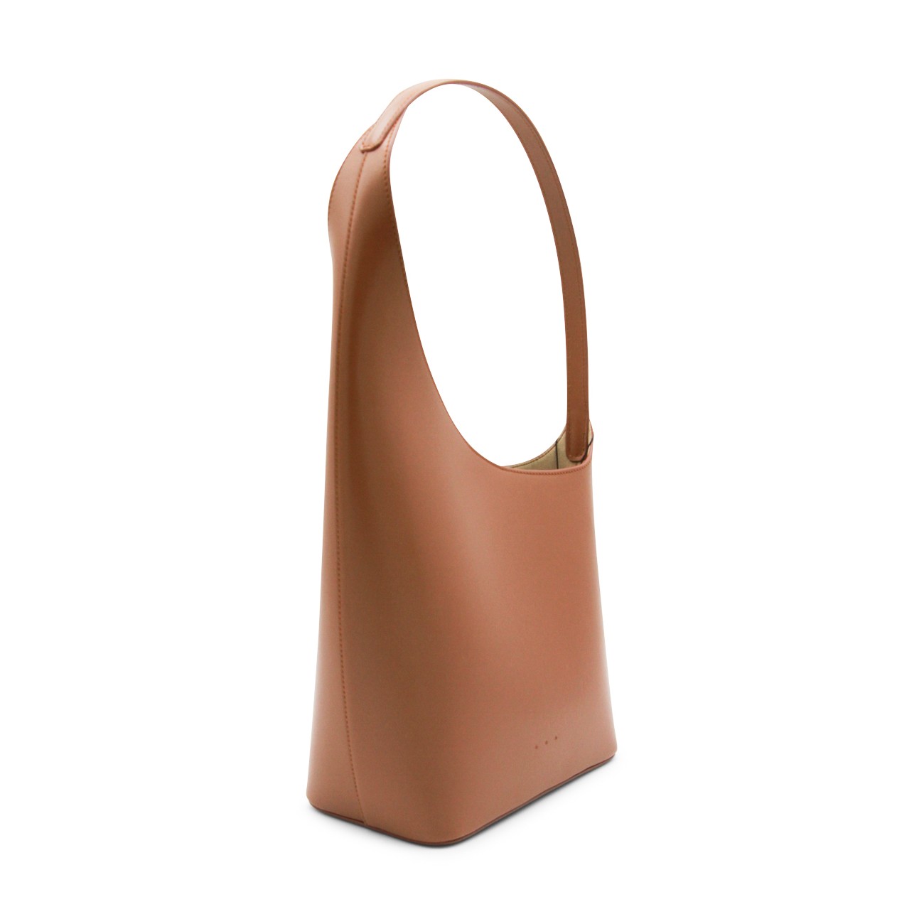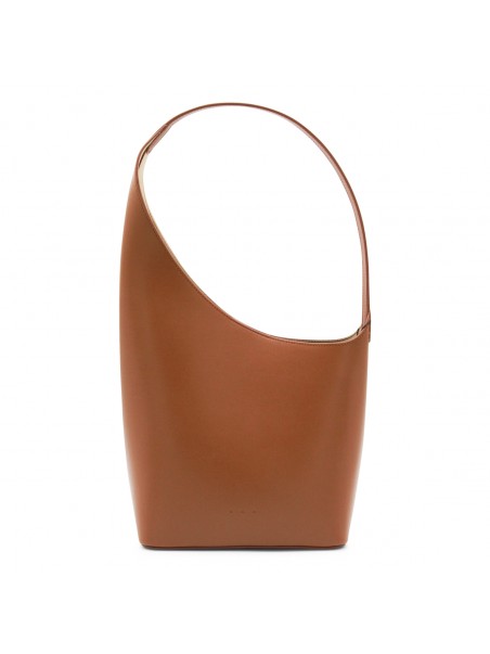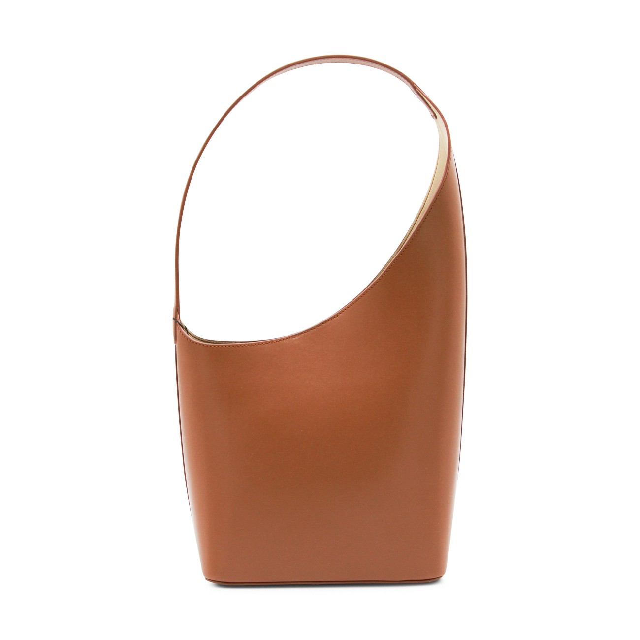 Brown leather Demi Lune Shoulder bag from Aesther Ekme featuring top handle, upper fastening and inside pocket.