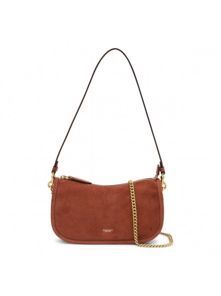 Clay leather Waverly shoulder bag from Coach featuring handle, gold tone metal hardware, removable chain shoulder strap, frontal logo, zip fastening and main compartment.