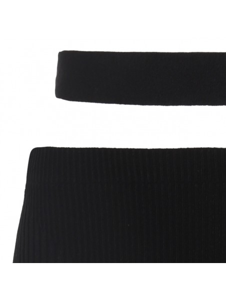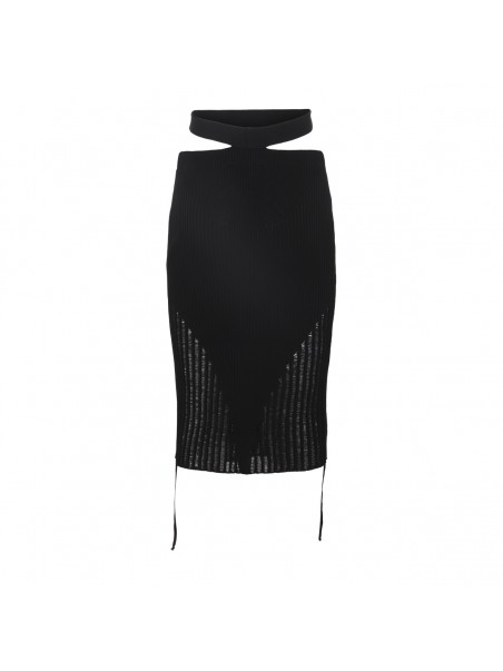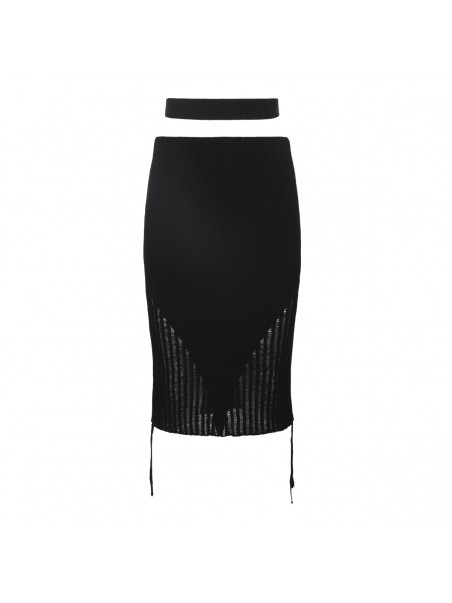 Black viscose blend skirt from Andreadamo featuring ribbed knit, cut-out detailing, stretch-design, straight hem and knee-length.