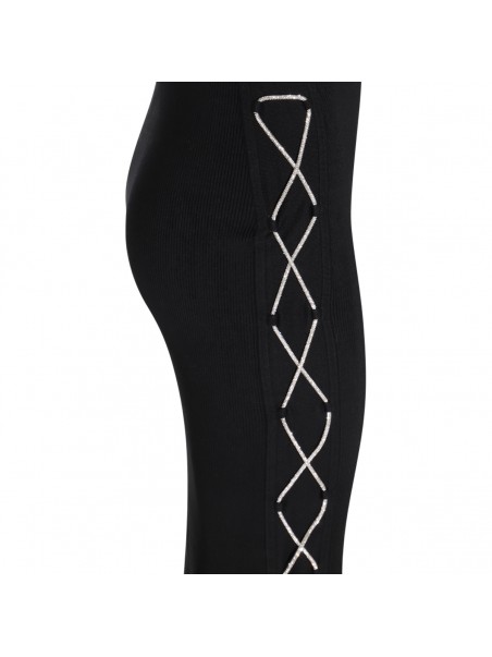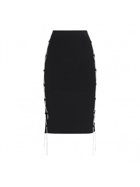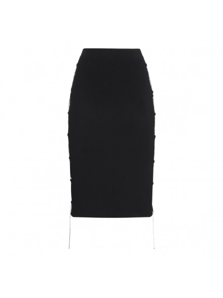 Black cotton blend skirt from Giuseppe di Morabito featuring high waist, below-knee length, straight hem and lace detail at the sides.