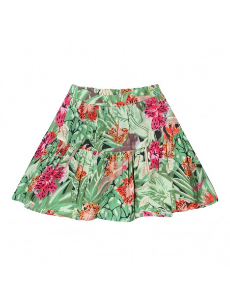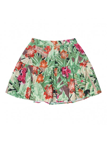 Green viscose jungle skirt from KENZOKids featuring pleated line, concealed zip closure and all over jungle print.