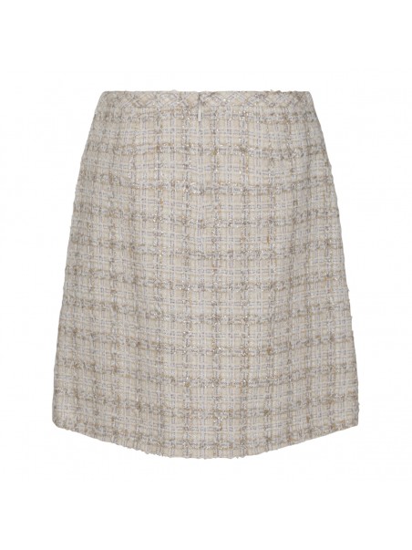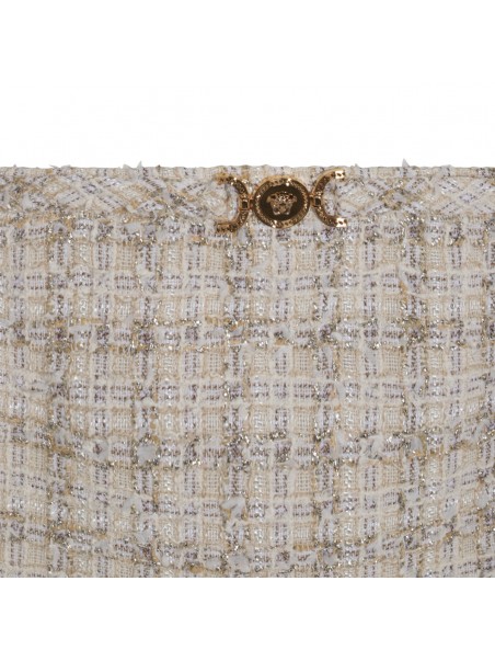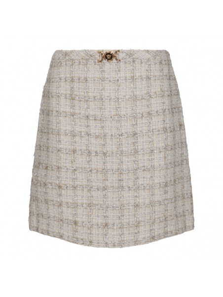 White cotton mini skirt from Versace featuring back zip fastening, mini length, frontal gold tone detail and regular vestibility.
