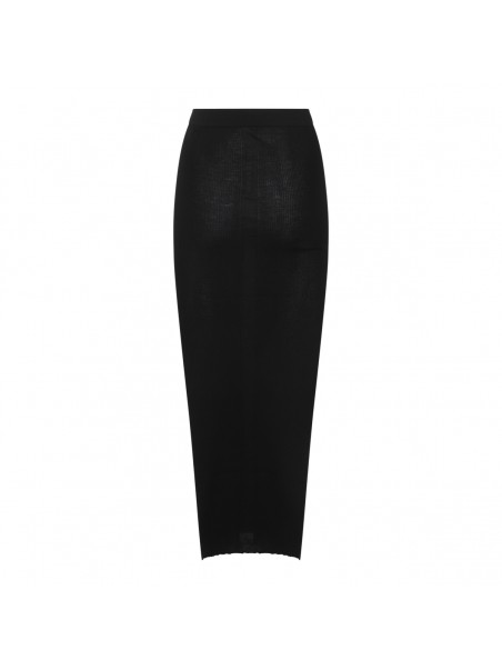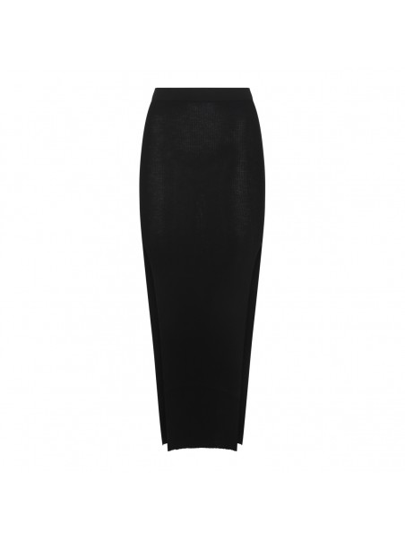 Black wool skirt from Rick Owens featuring elasticizated waist, midi length and lateral splits.