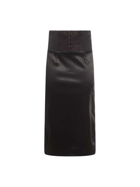 Black midi skirt from Dolce&Gabbana featuring back zip fastening, midi length and lucid effect.