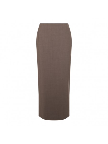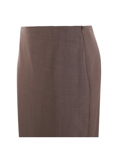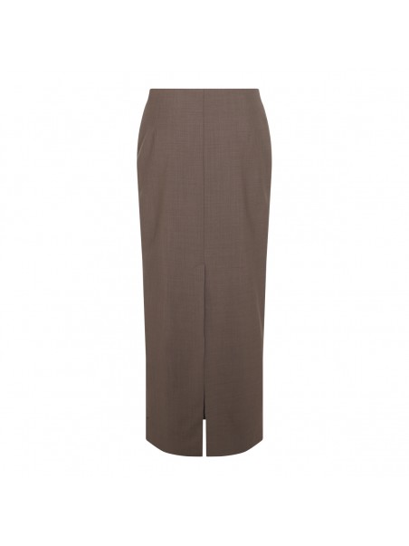 Brown wool skirt from Brunello Cucinelli featuring elasticizated waist, back split and midi length.