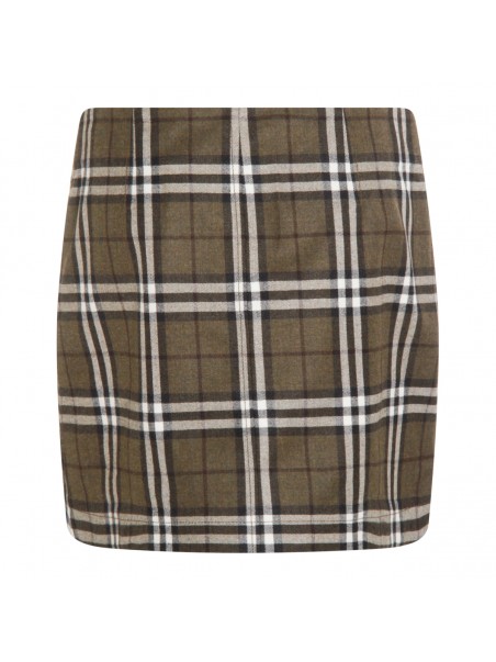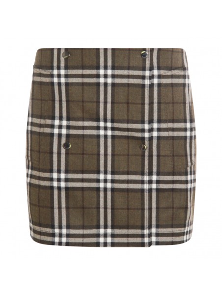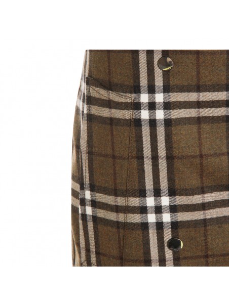 Brown wool skirt from Burberry featuring mini length, lateral zip fastening, buttons detail and all over check motif.