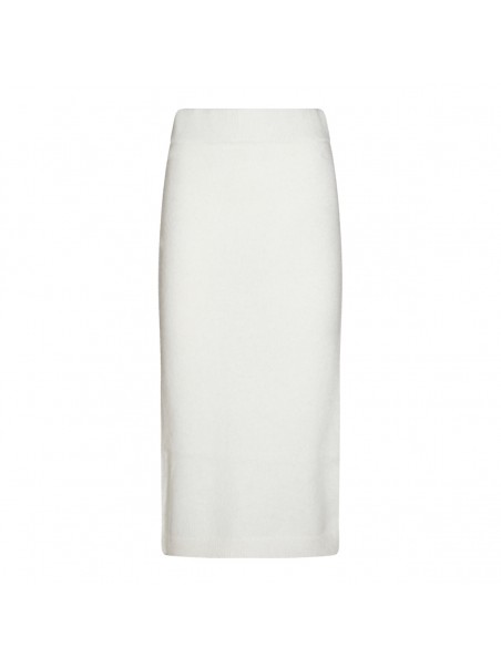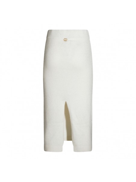 White viscose midi skirt from Twinset featuring elasticizated waist, midi length, logo patch and back split.