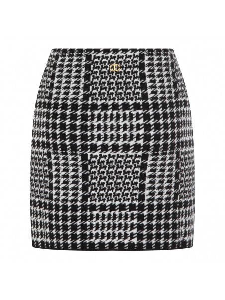 Black and white viscose skirt from Twinset featuring elasticated waistband and mini lenght.