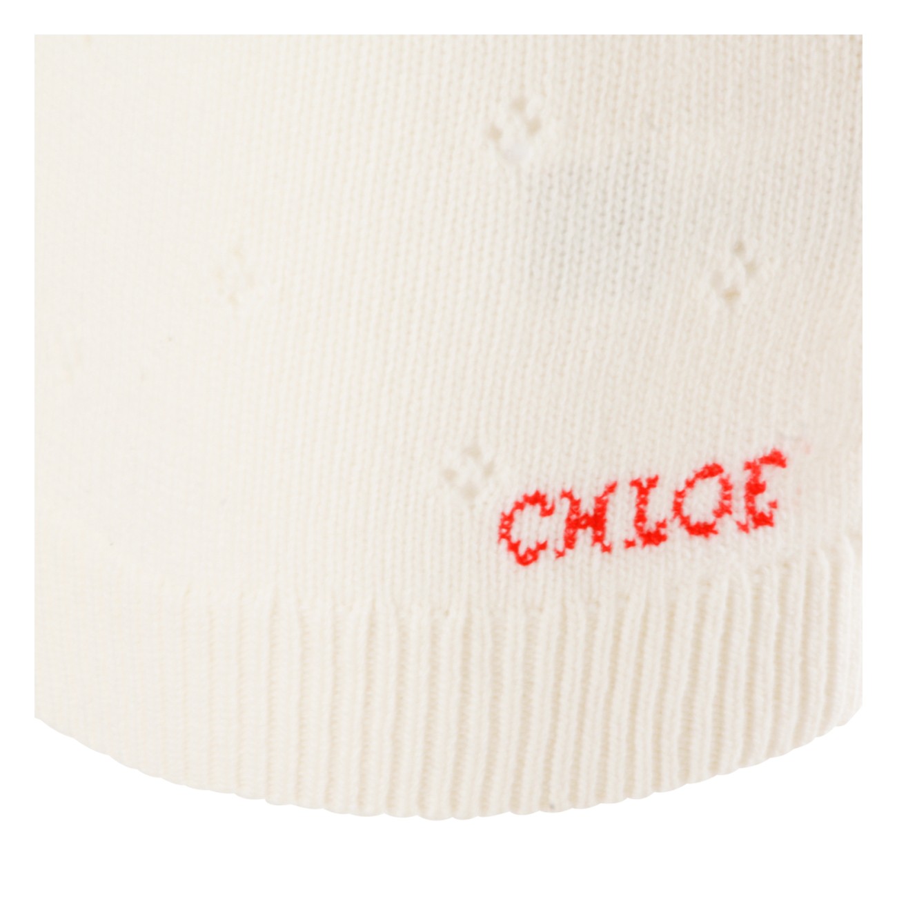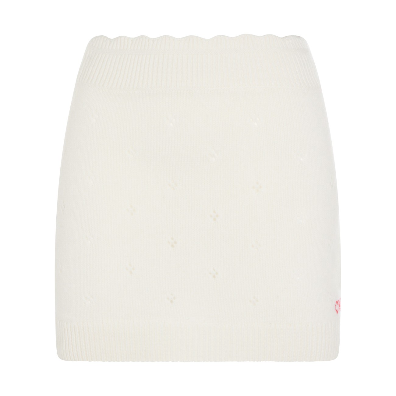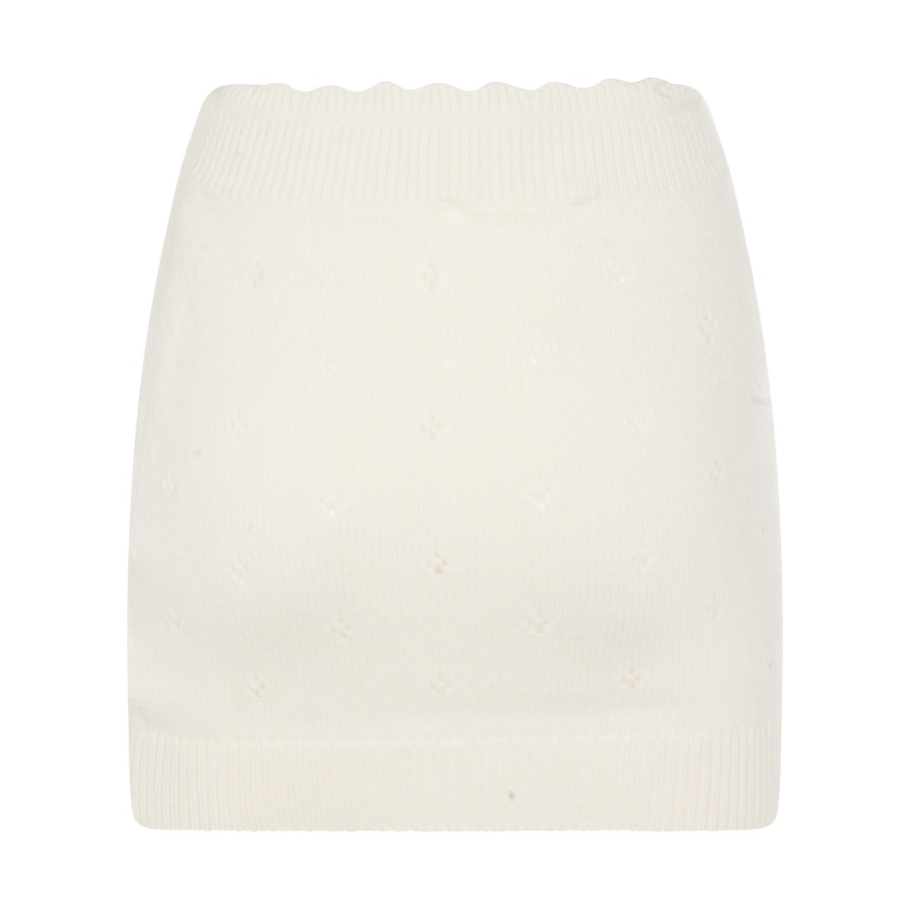White wool skirt from Chlofeaturing elasticated waistband, embroidered logo and mini lenght.