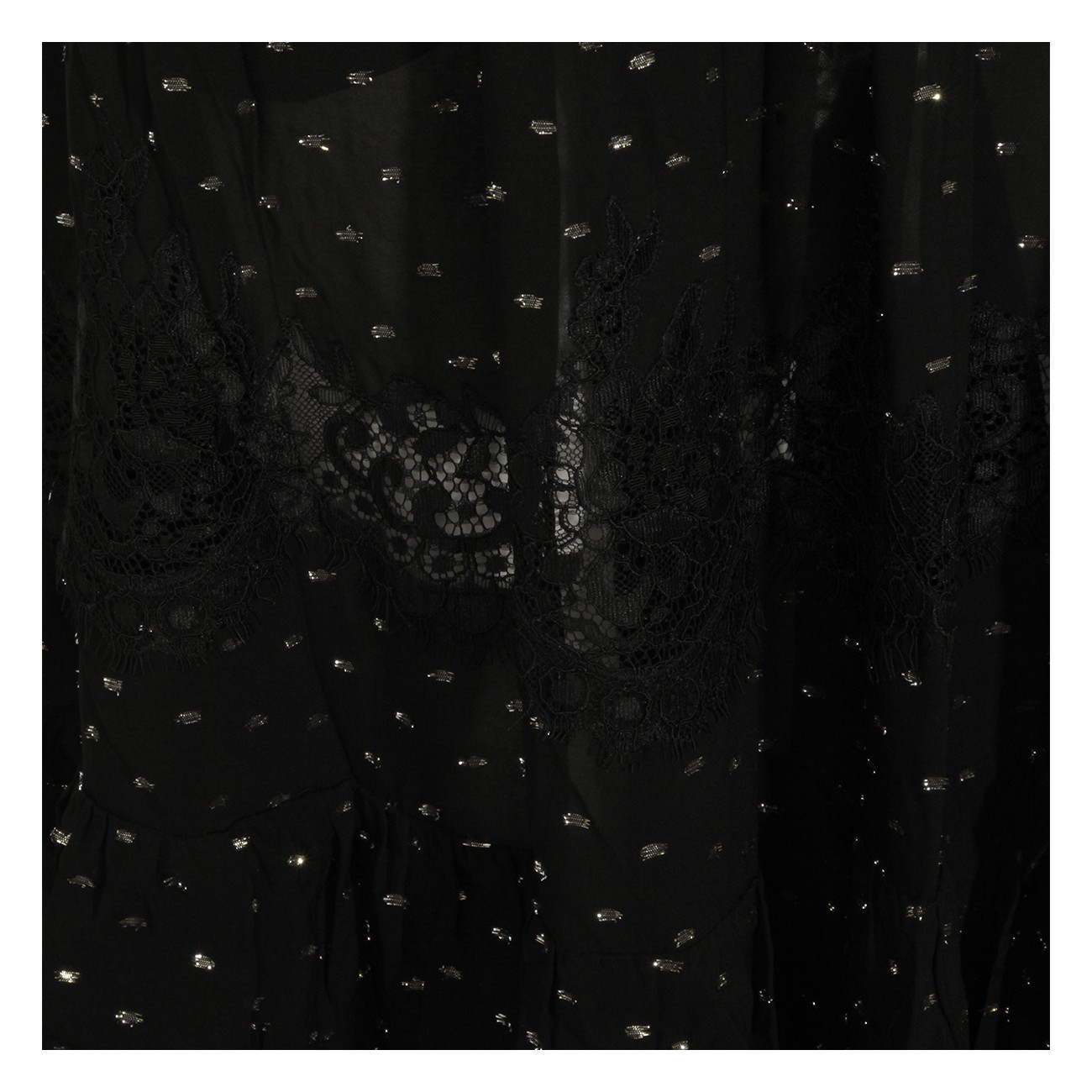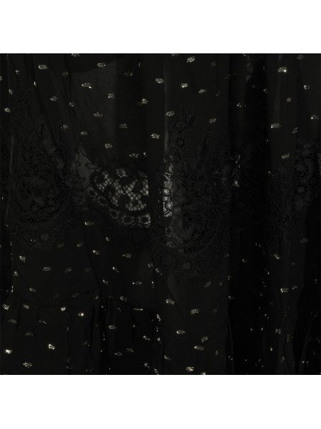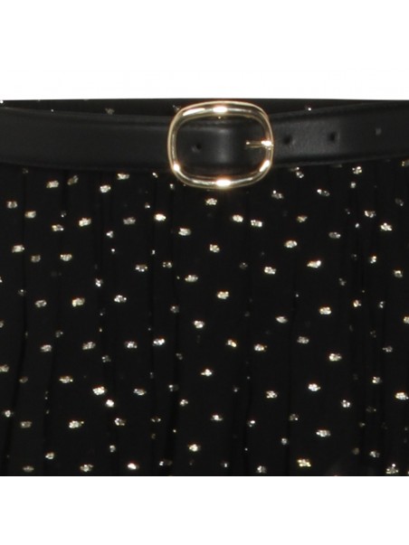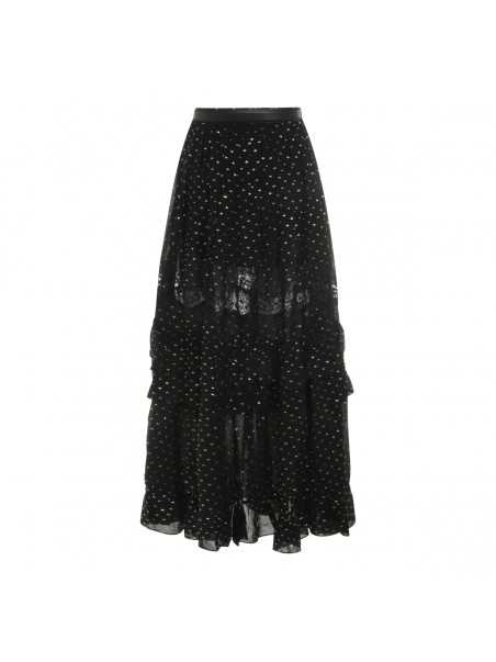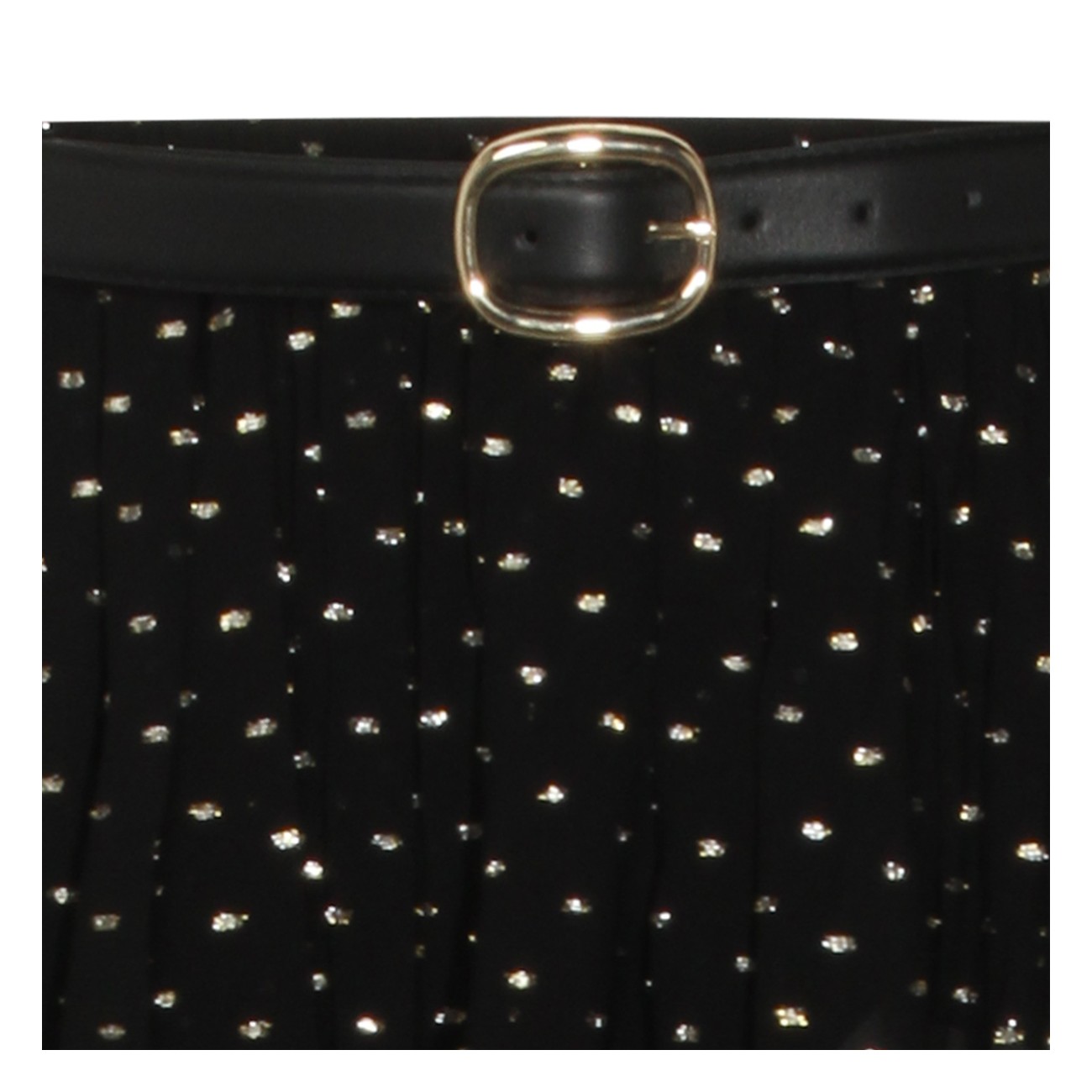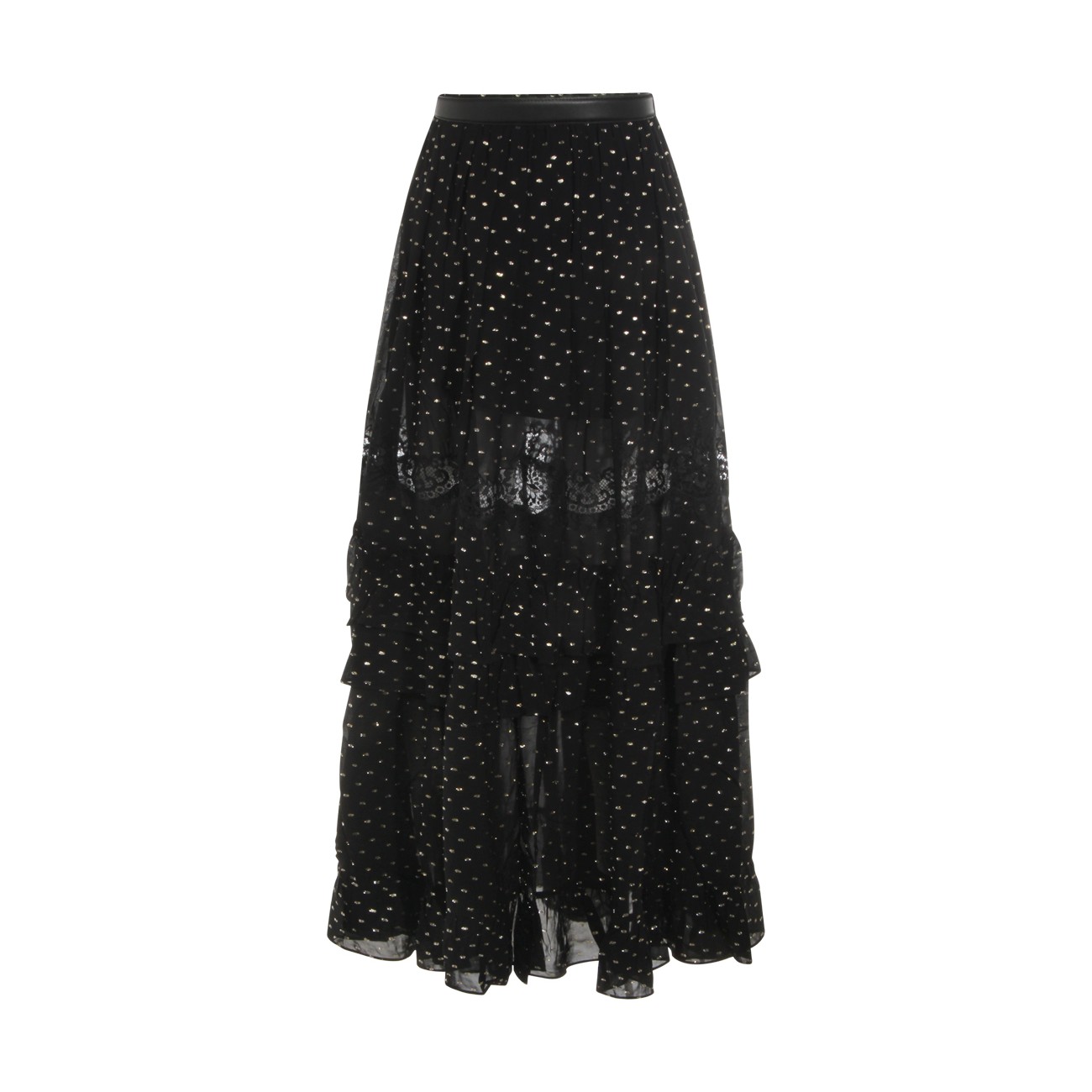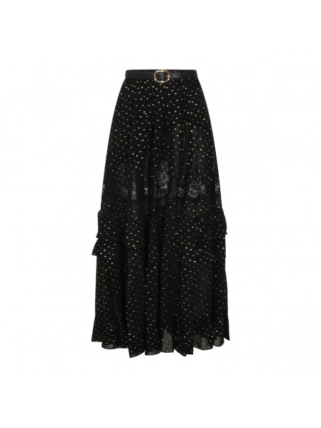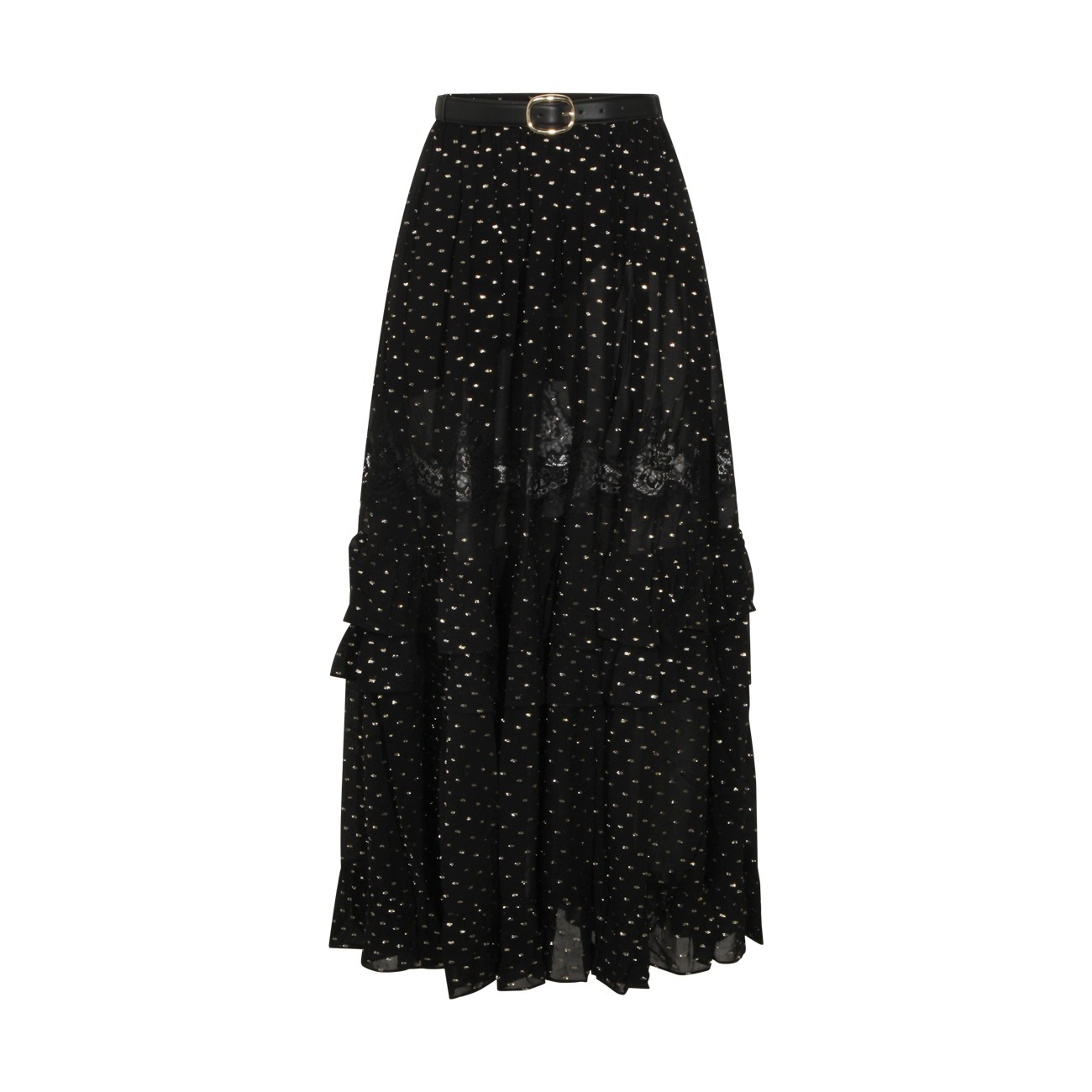 Black viscose skirt from Self-Portrait featuring high waist, belt, all over gold details and all over length.
