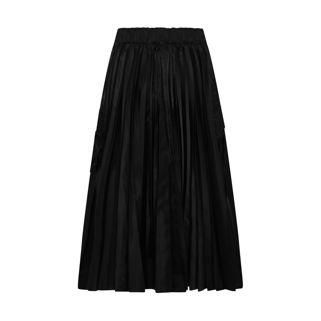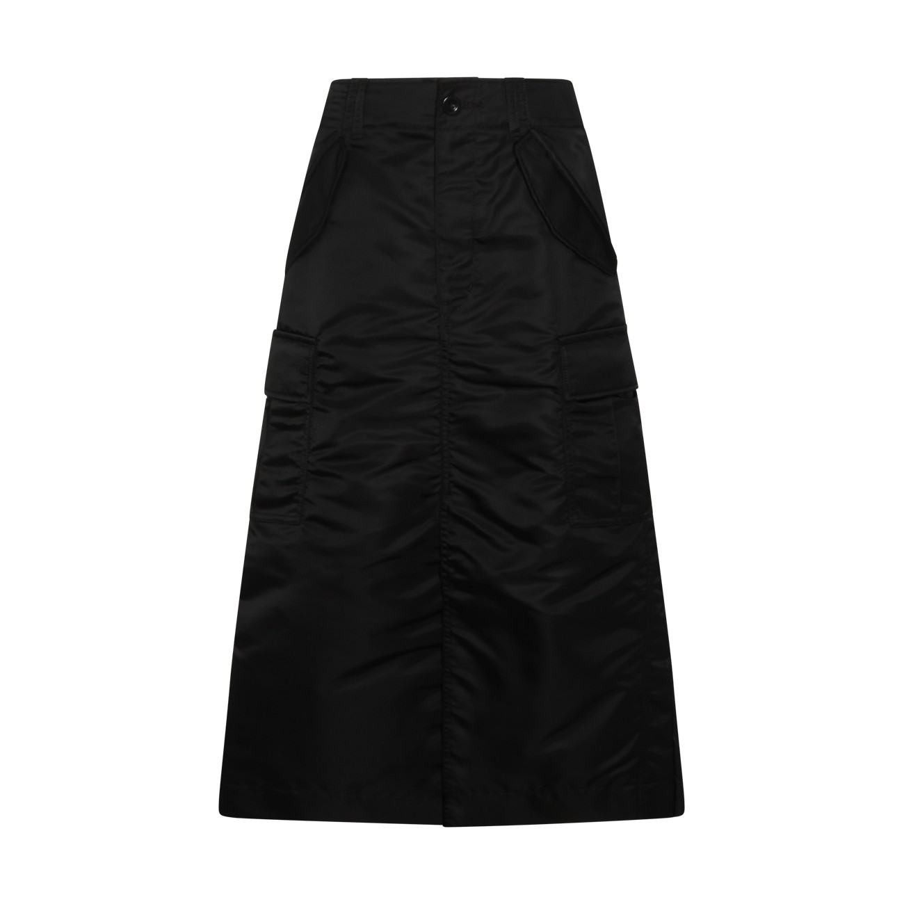 Black skirt from Sacai featuring high waist, belt loops, zip fastening, pockets, all over length and oversize vestibility.