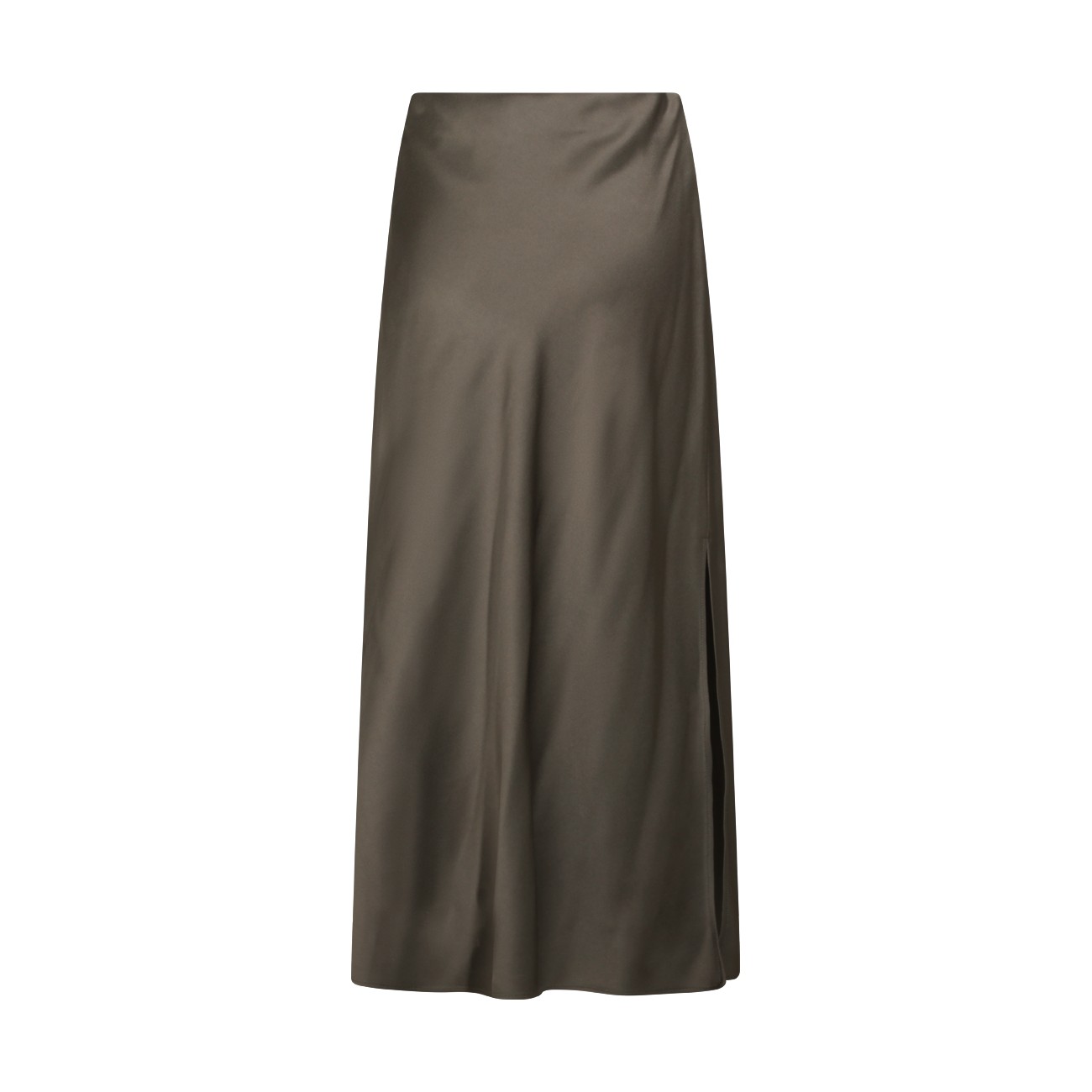 Green skirt from Brunello Cucinelli featuring high waist, all over length and oversize vestibility.