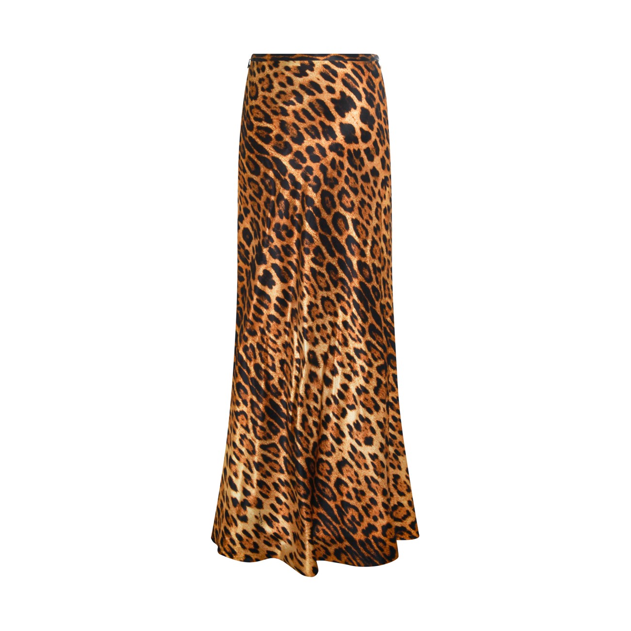 Leopard silk skirt from Roberto Cavalli featuring high waist, side zip fastening, slim fit and long lenght.