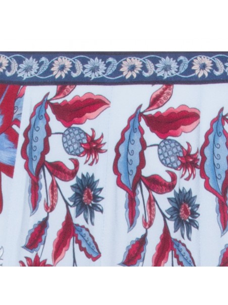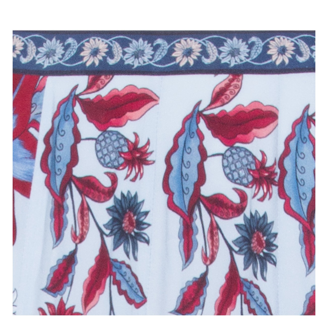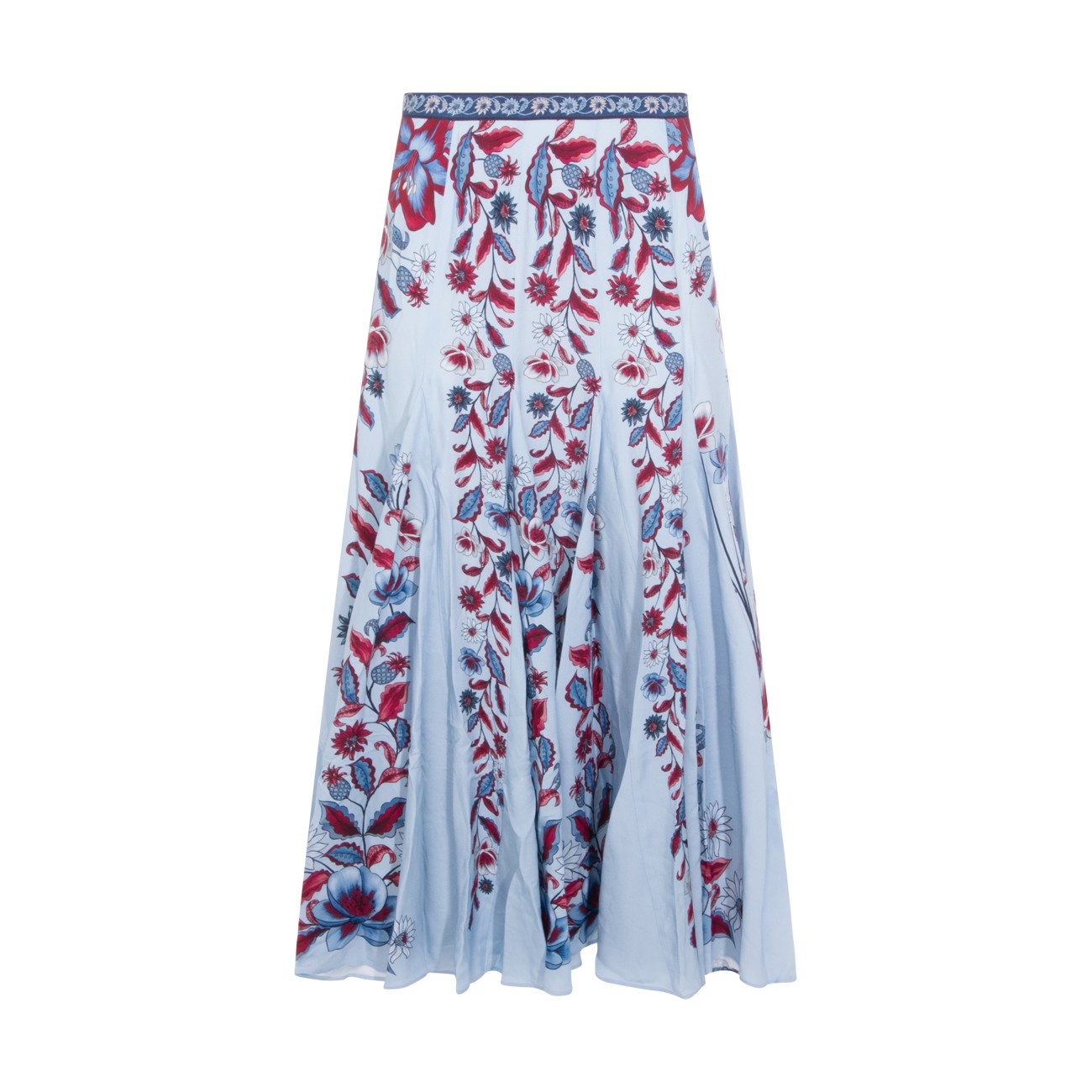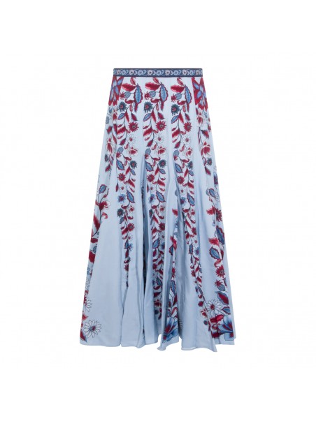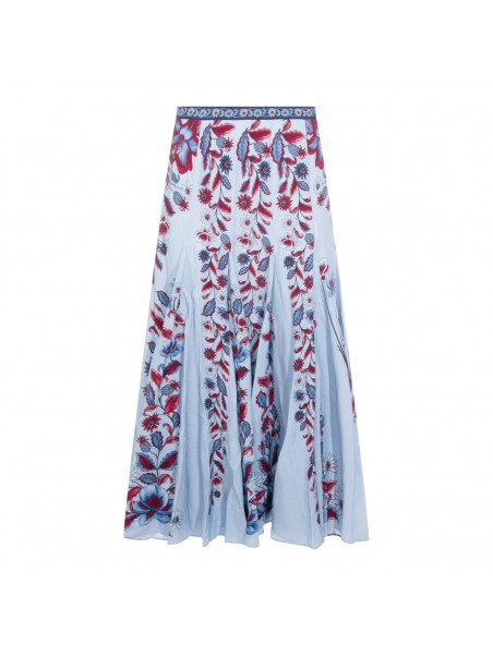Light blue viscose skirt from Farm Rio featuring high waist, invisible zipper at side seam, all over stamp and oversize vestibility.