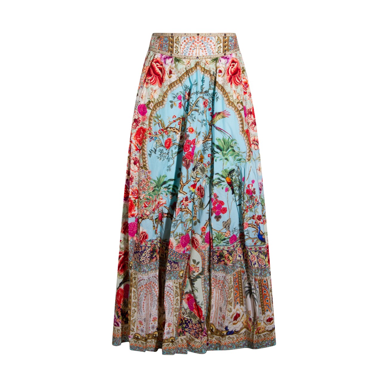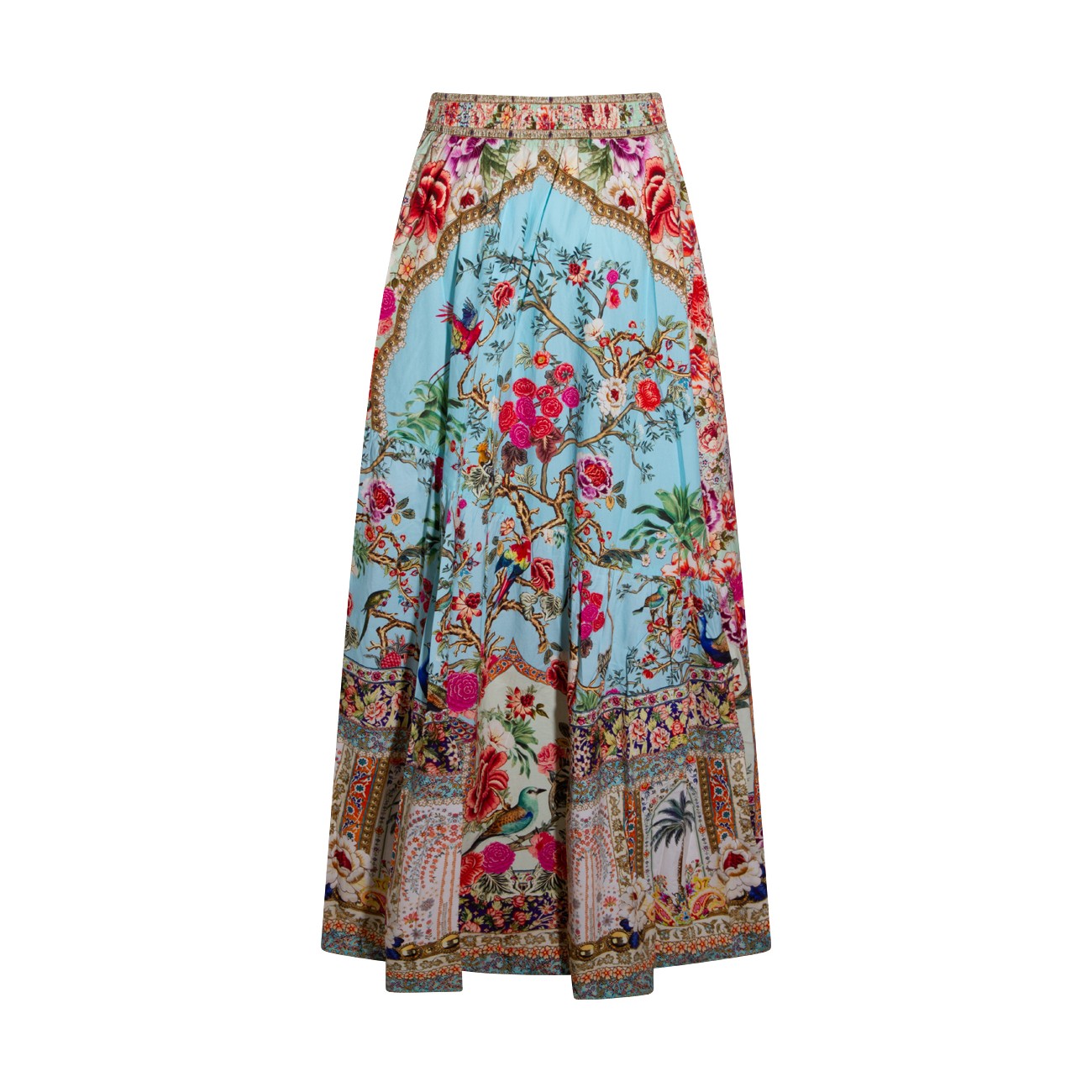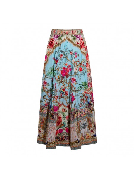 Light blue skirt from Camilla featuring high waist, elasticated waistband, full length, all over stamp and relaxed fit.