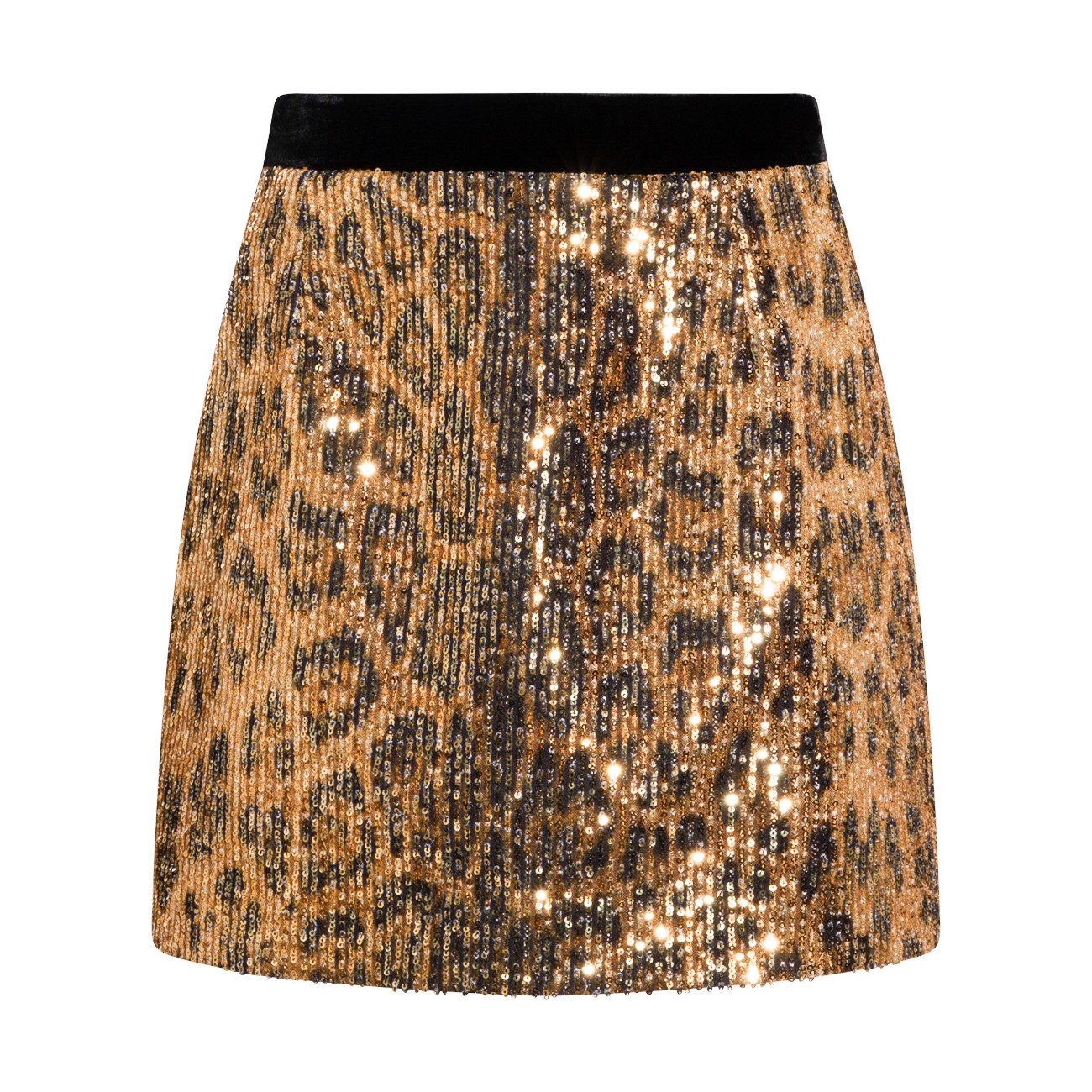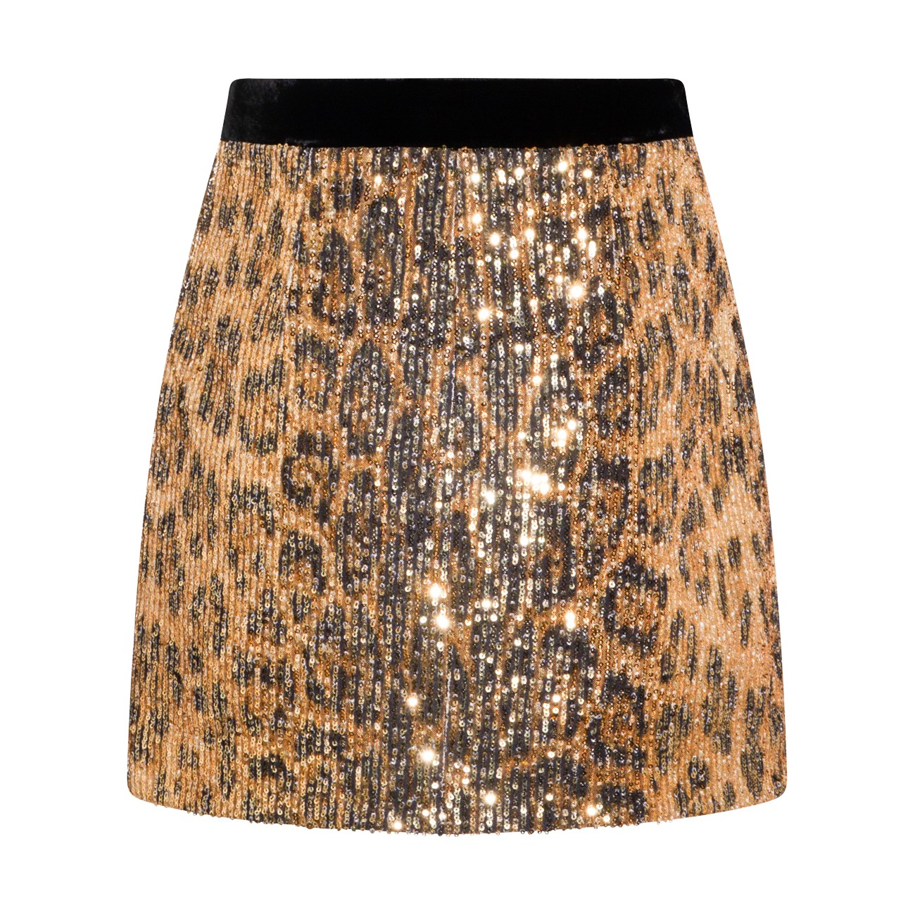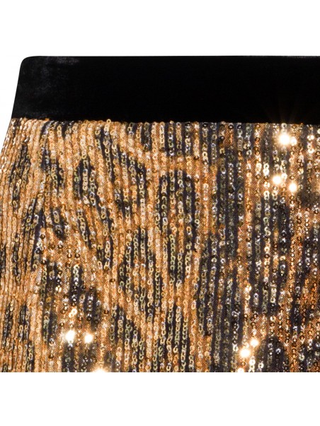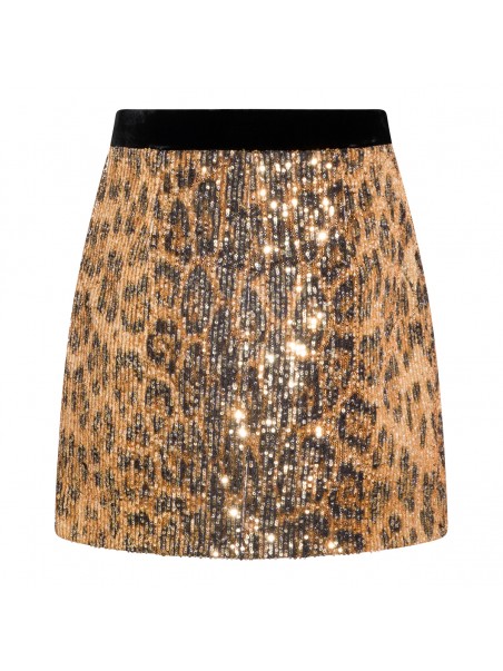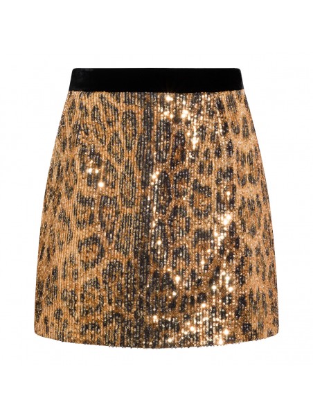 Leopard skirt from Roberto Cavalli featuring elasticized waistband, high waist, mini length and all over sequins details.