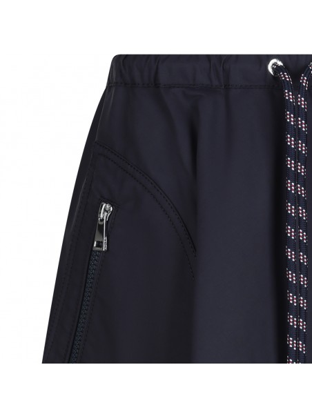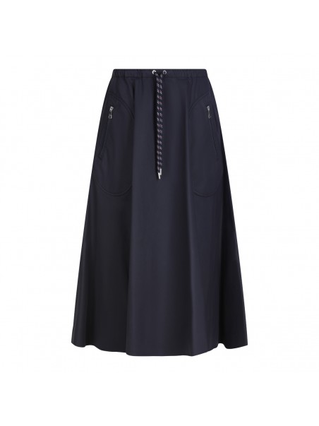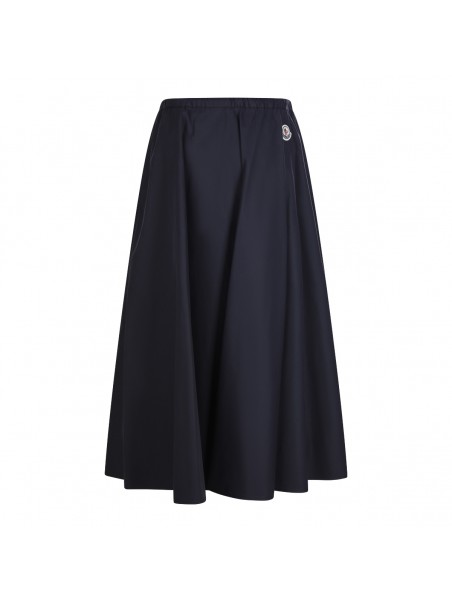 Black midi skirt from Moncler featuring elasticizated waist with drawstrings, pockets, logo patch and midi length.
