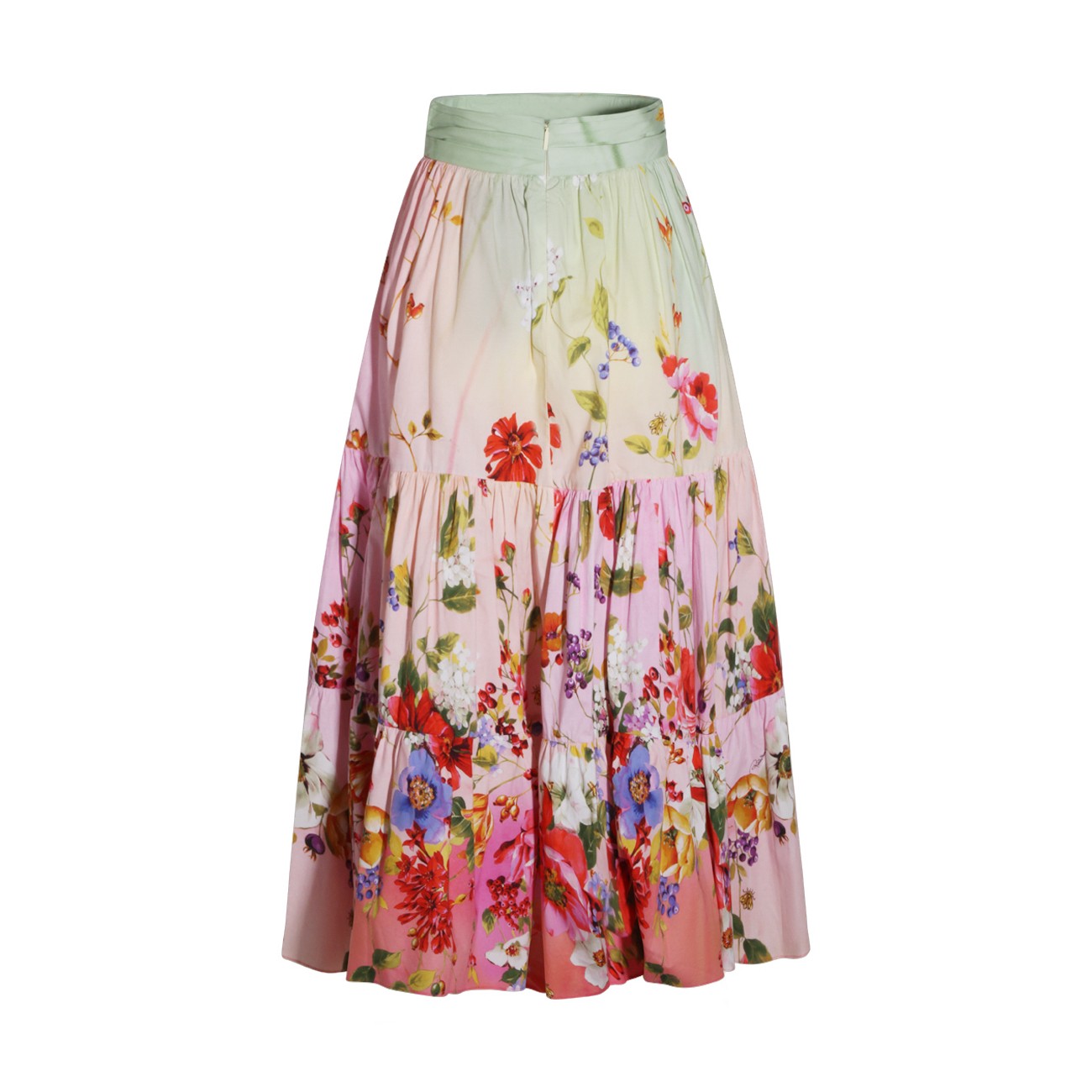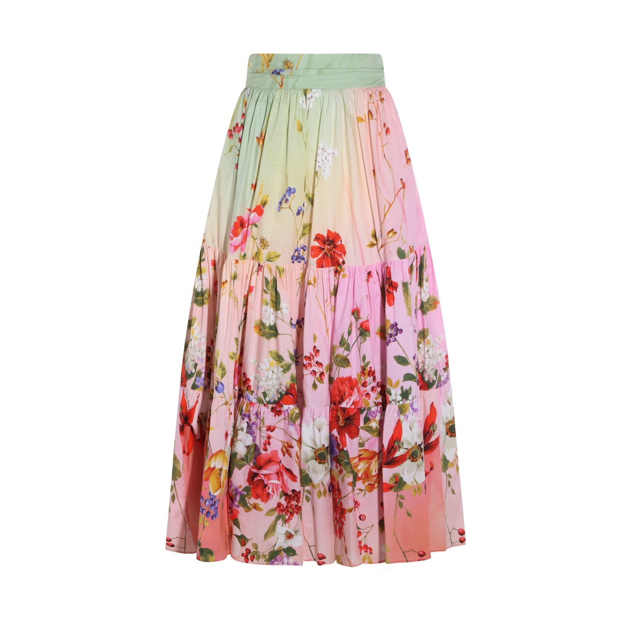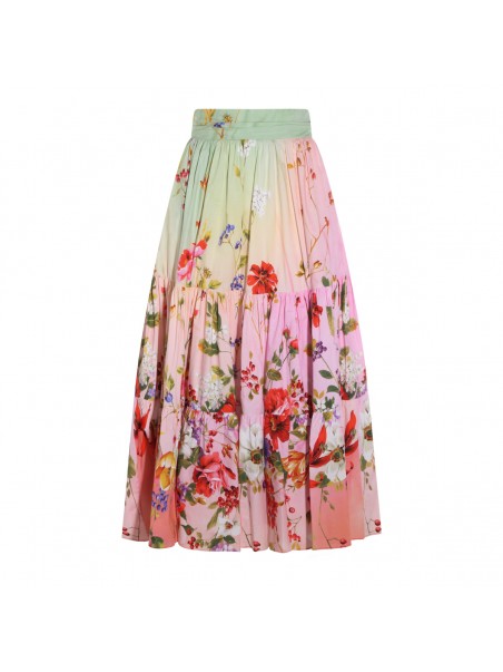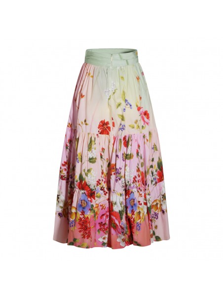 Multicolor cotton skirt from Roberto Cavalli featuring lateral zip fastening, all over prints and midi length.