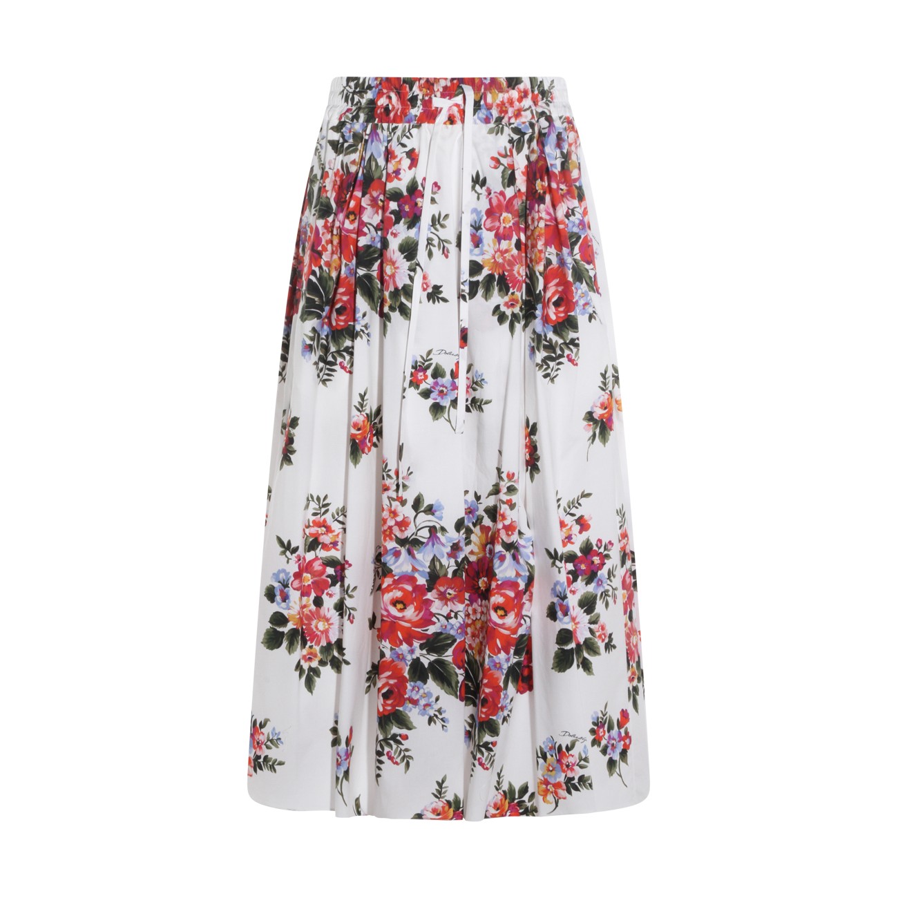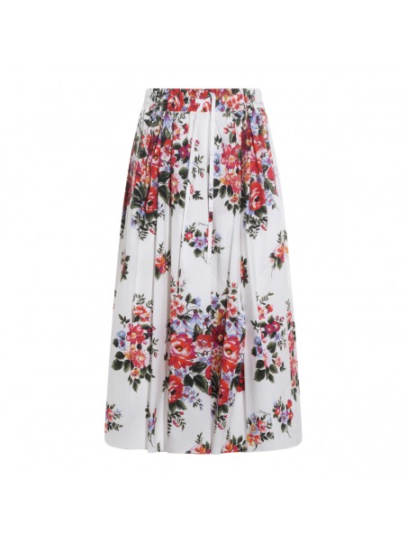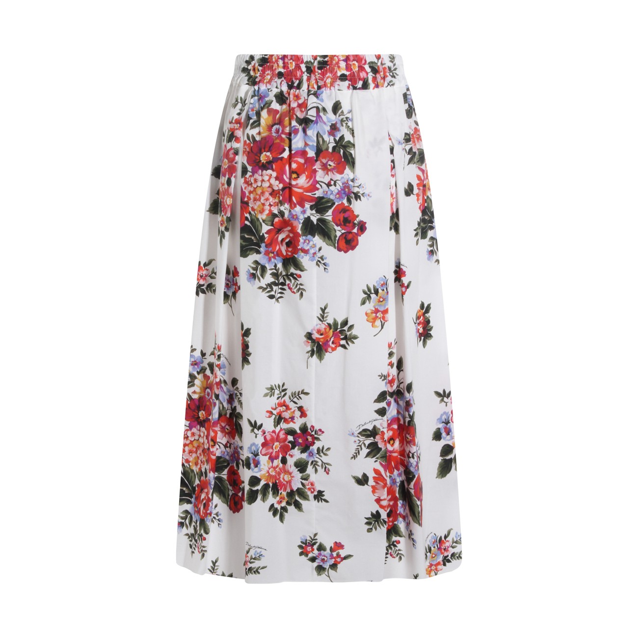 White maxi skirt from Dolce&Gabbana featuring zip fastening, maxi length and flowers print.