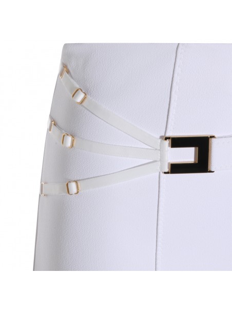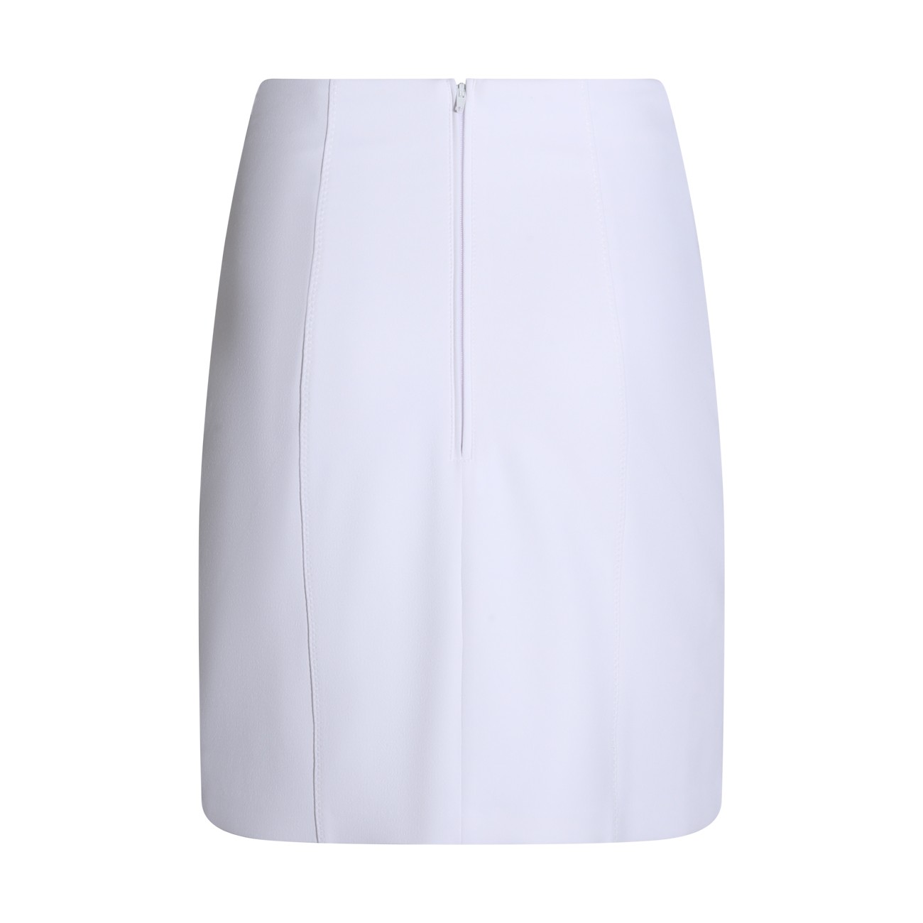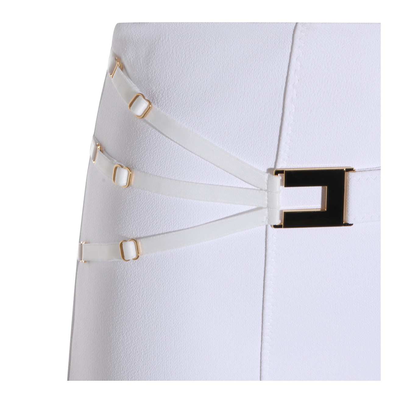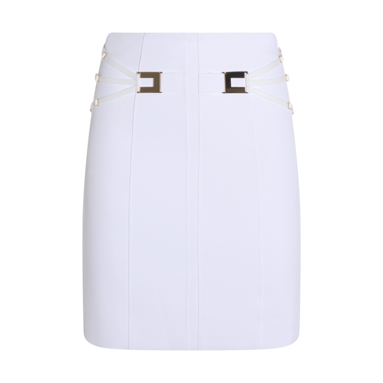 White mini skirt from Elisabetta Franchi featuring zip fastening, gold tone hardware, belt waist and mini length.