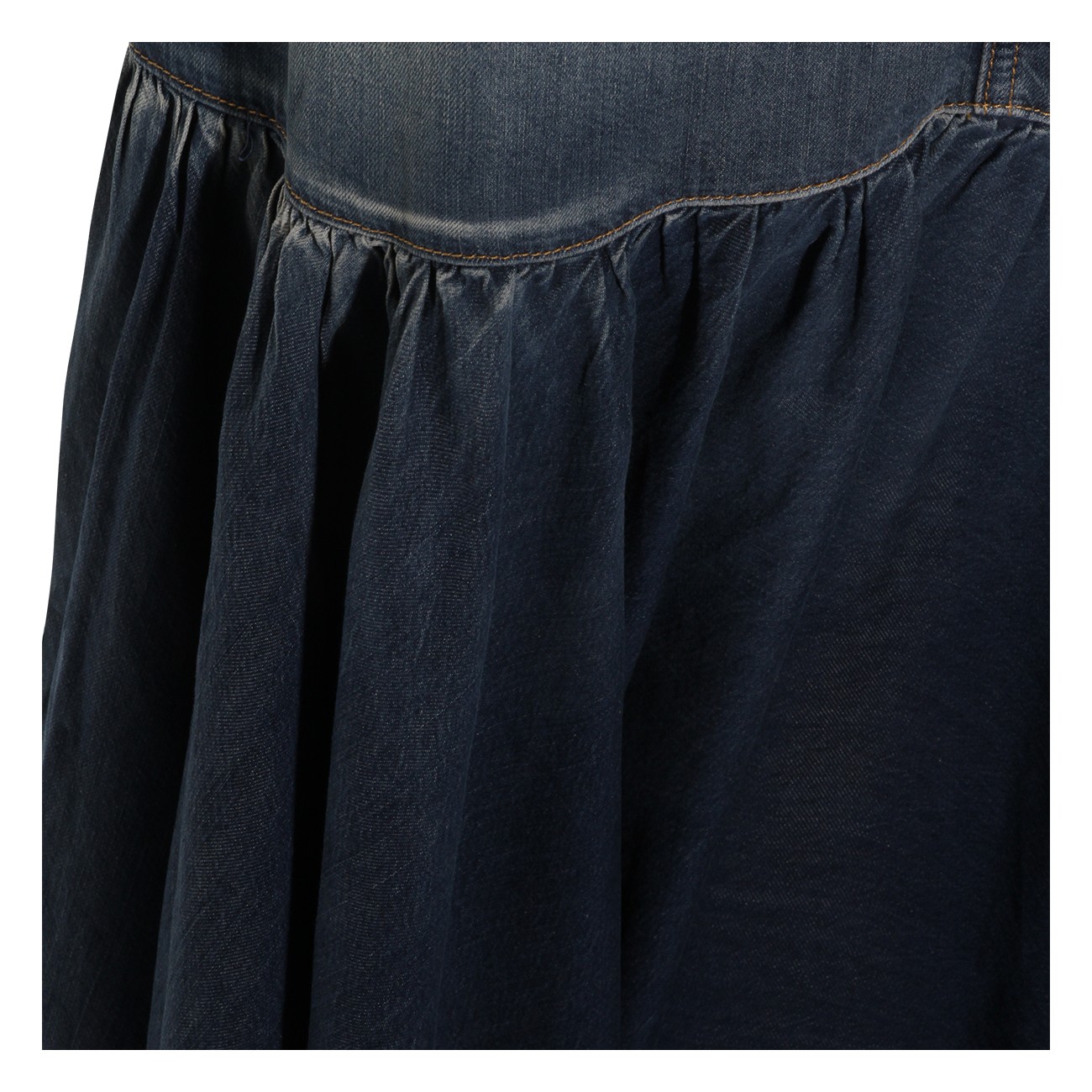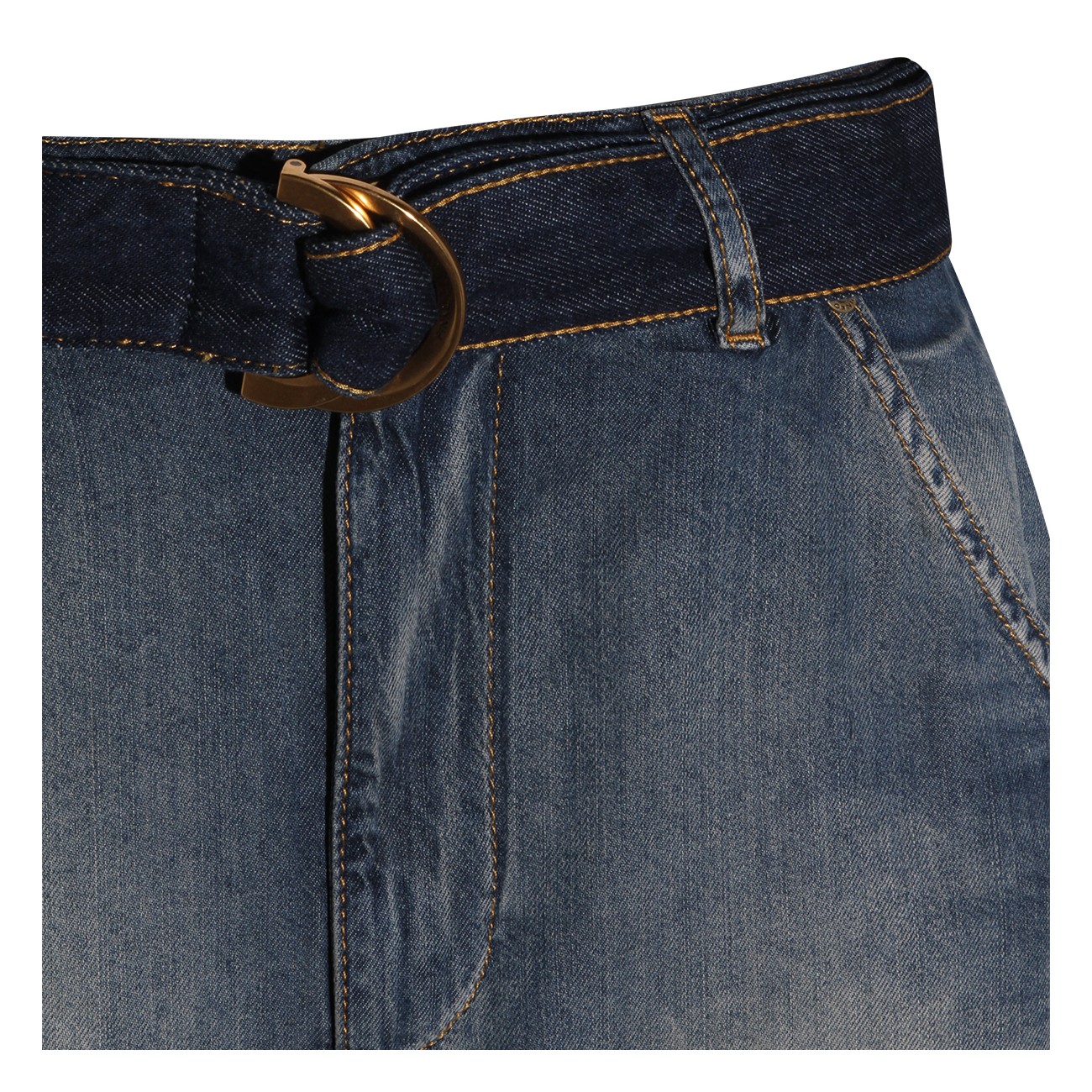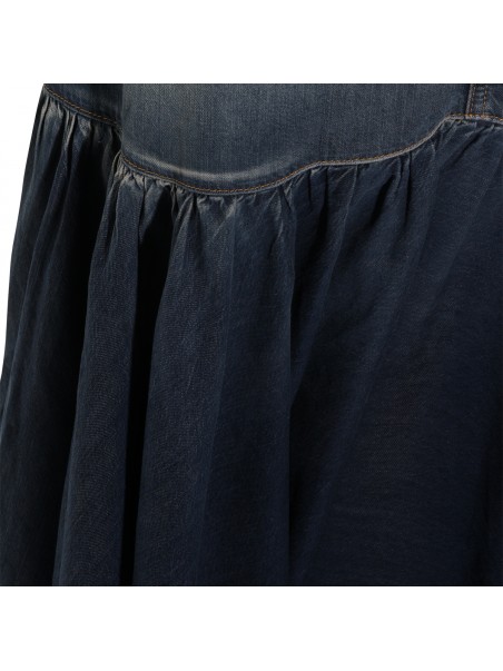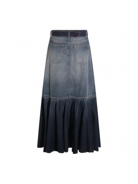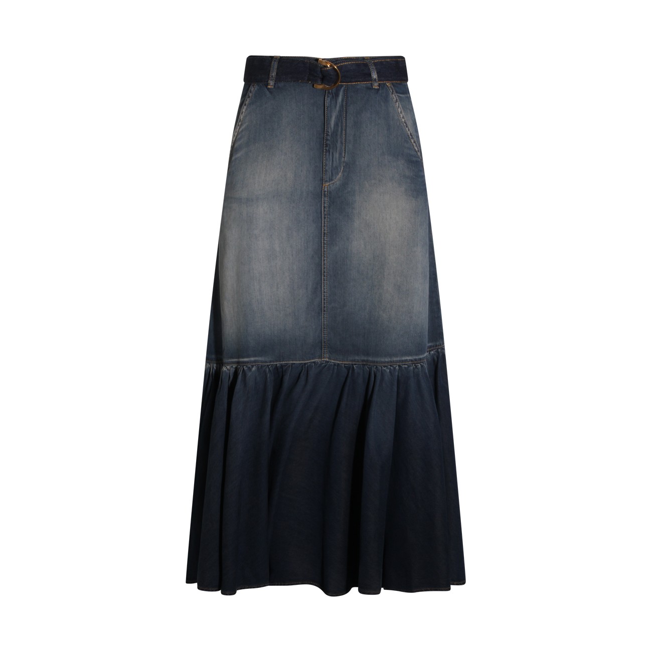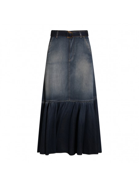 Dark blue cotton denim skirt from Pinko featuring zip and belt fastening, classic pockets, midi length, details and regular vestibility.