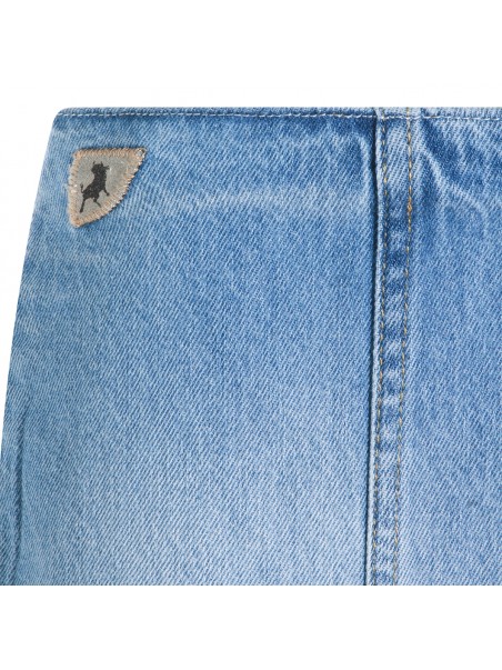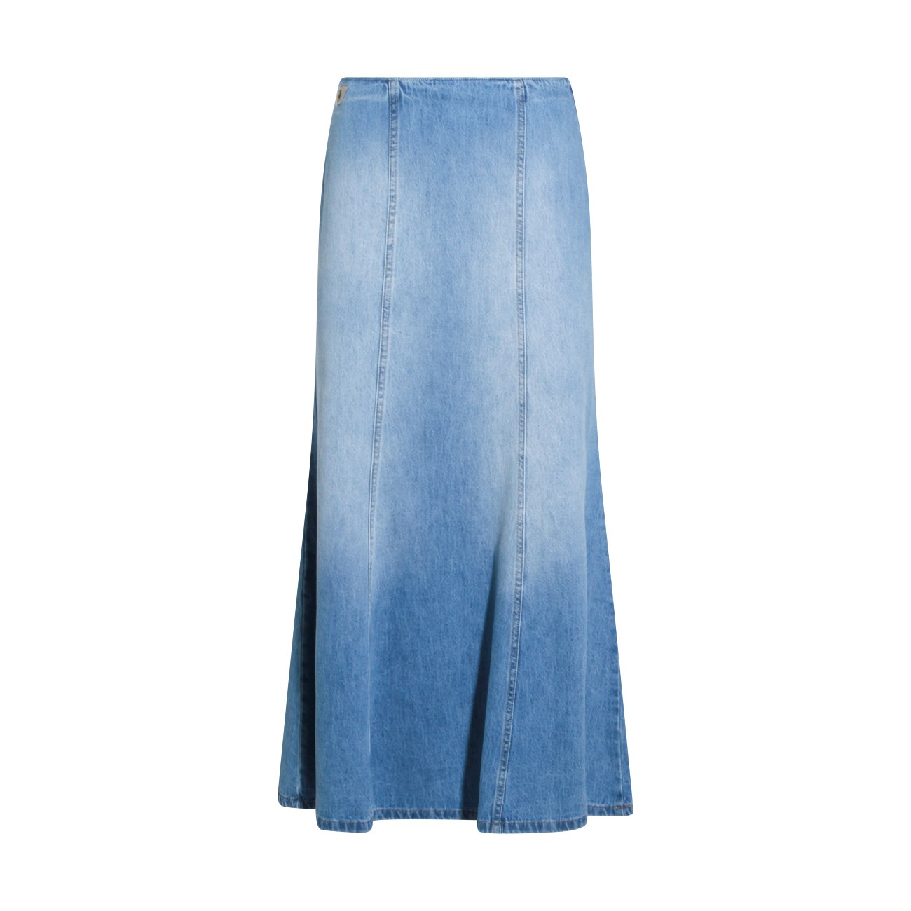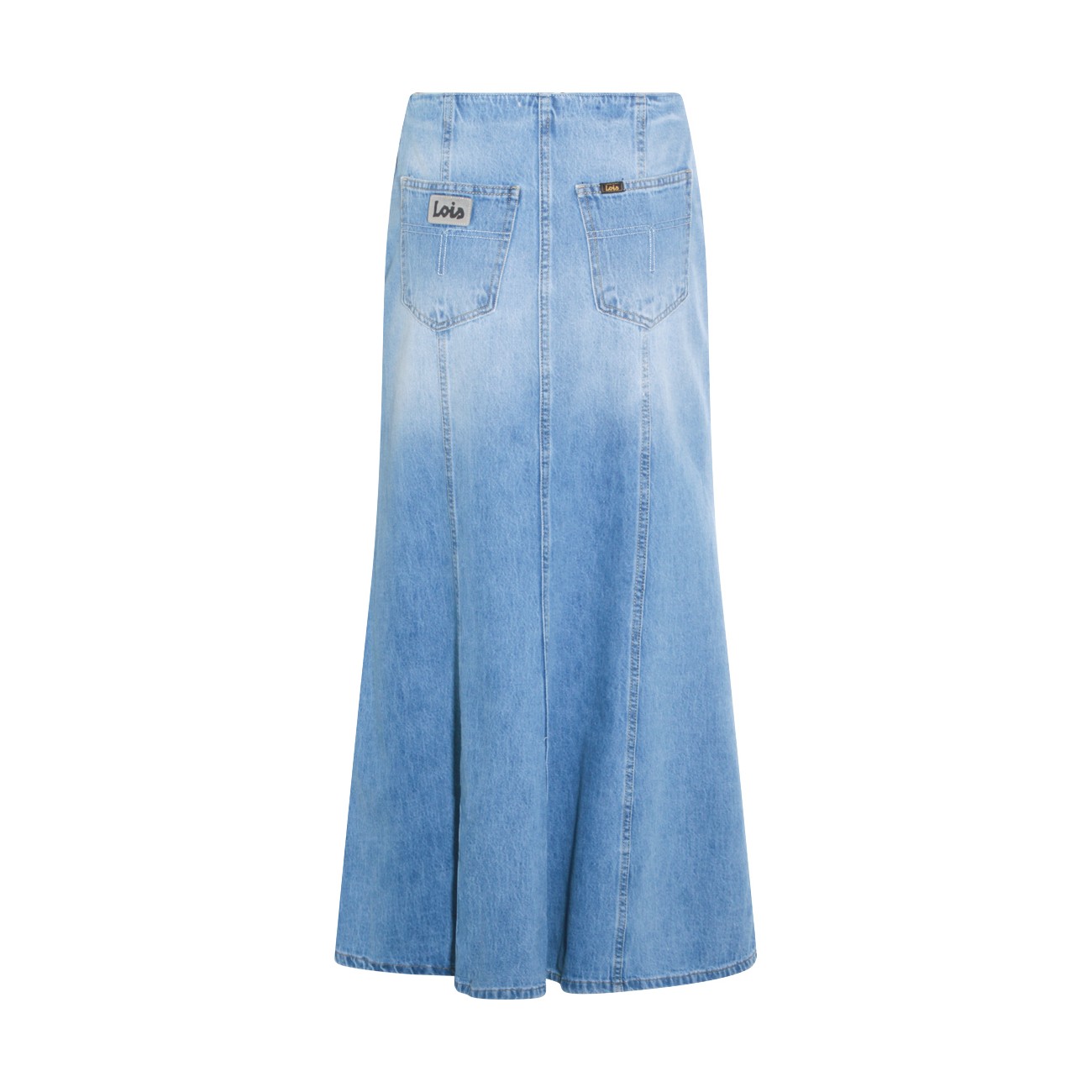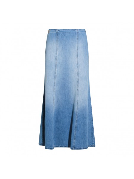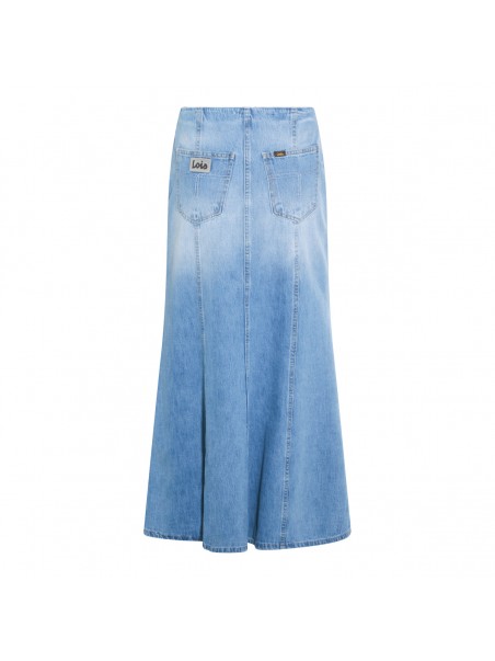 Blue cotton Rohan Maxi skirt from Lois Jeans featuring long length, zipper closure, rigid fabric and high rise fit.