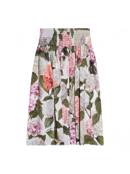Multicolor cotton skirt from Dolce & Gabbana featuring elasticated waist, all over flowers paint, logo and loose fit.