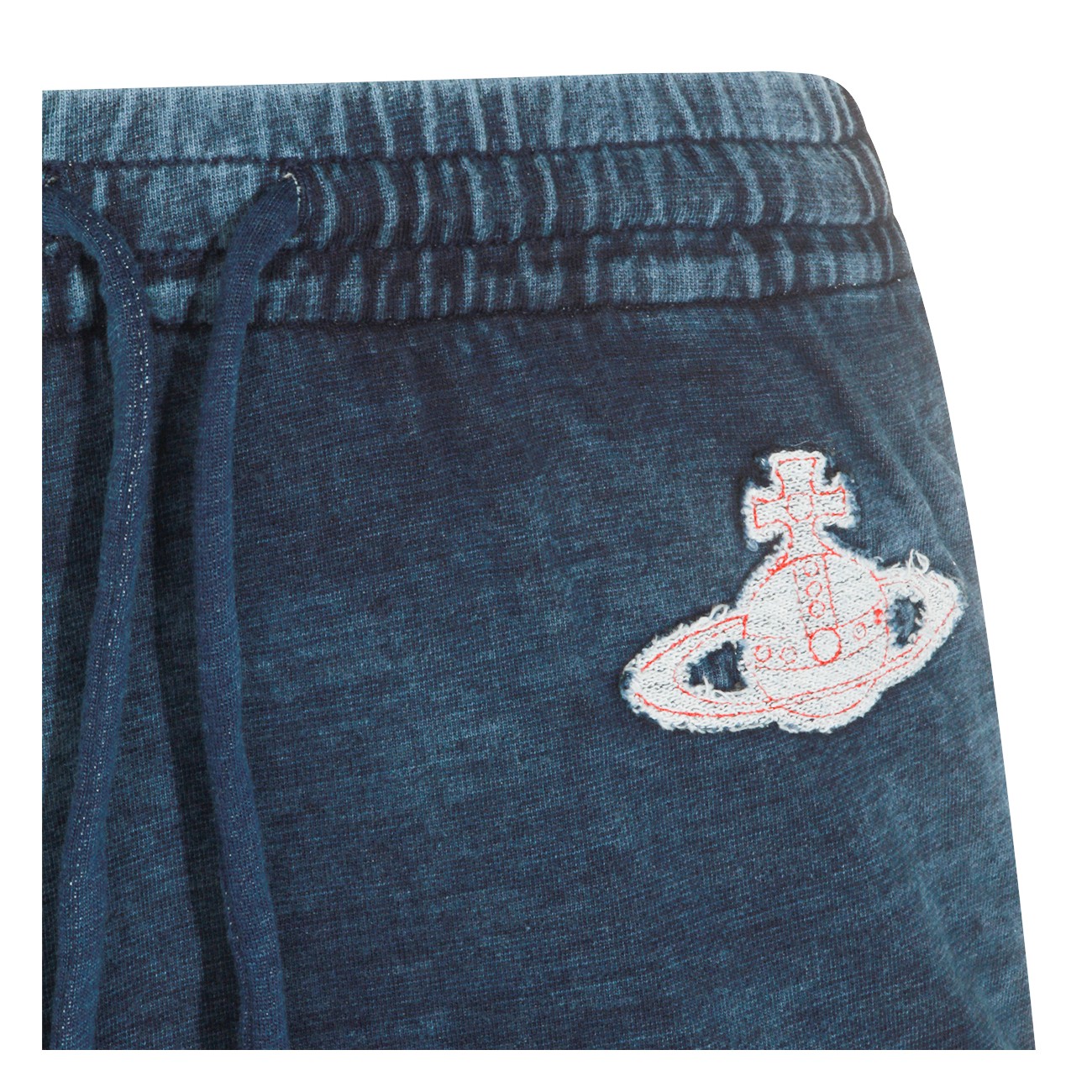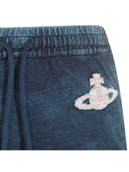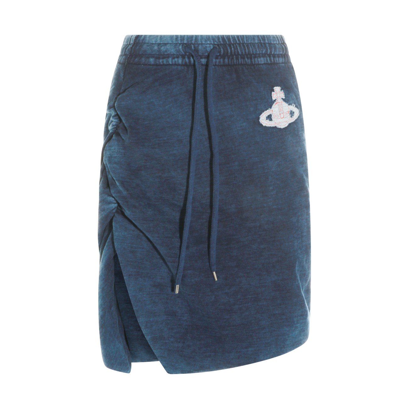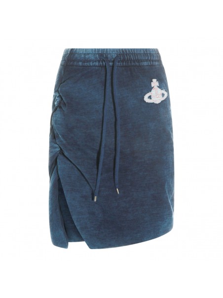 Blue cotton Orb skirt from Vivienne Westwood featuring drawstring closure, mid length and embroidered Orb logo patch at side.