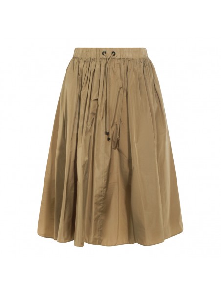 Green MXM Lonza skirt from Max Mara featuring elasticated waist with drawstring, pleated and soft vestibility.