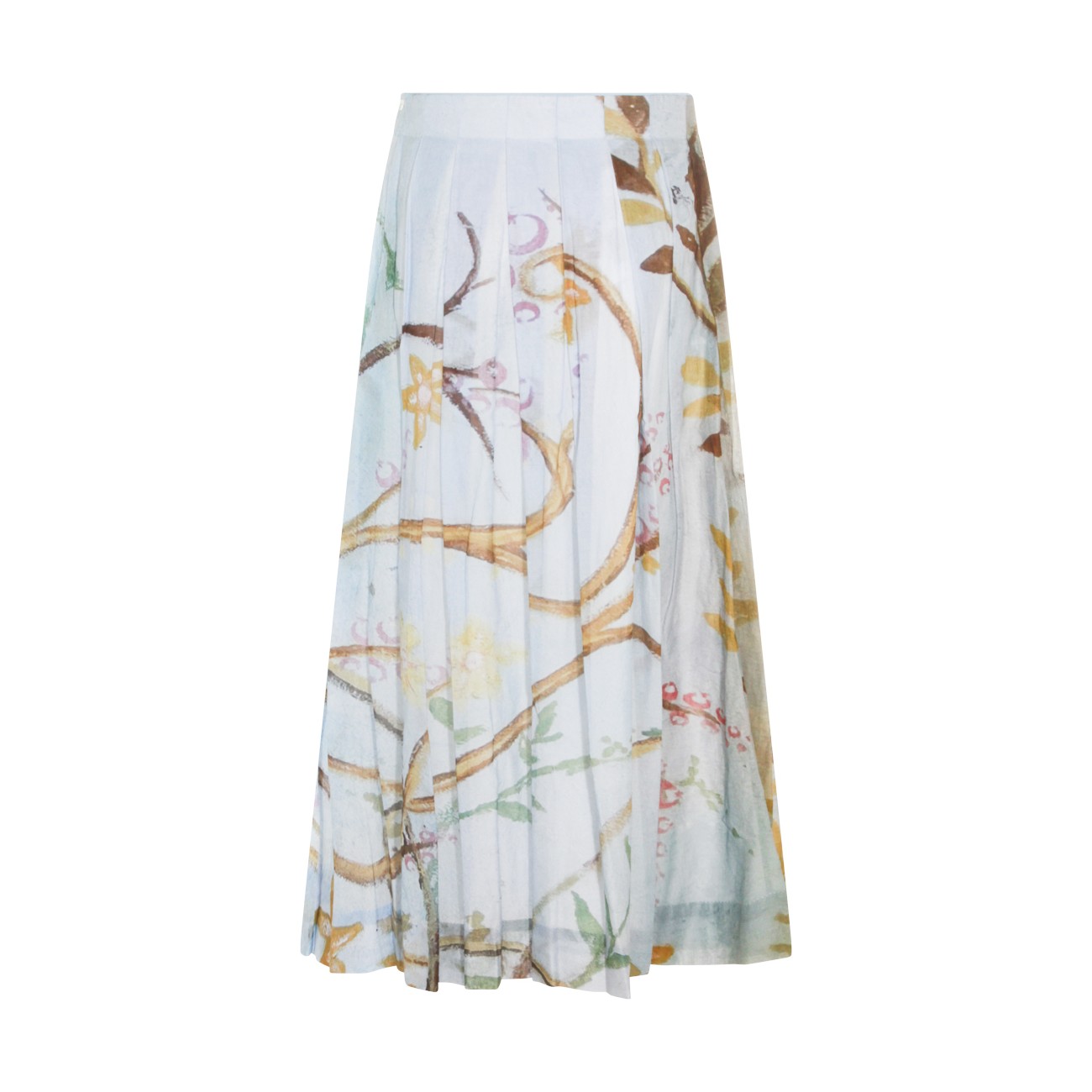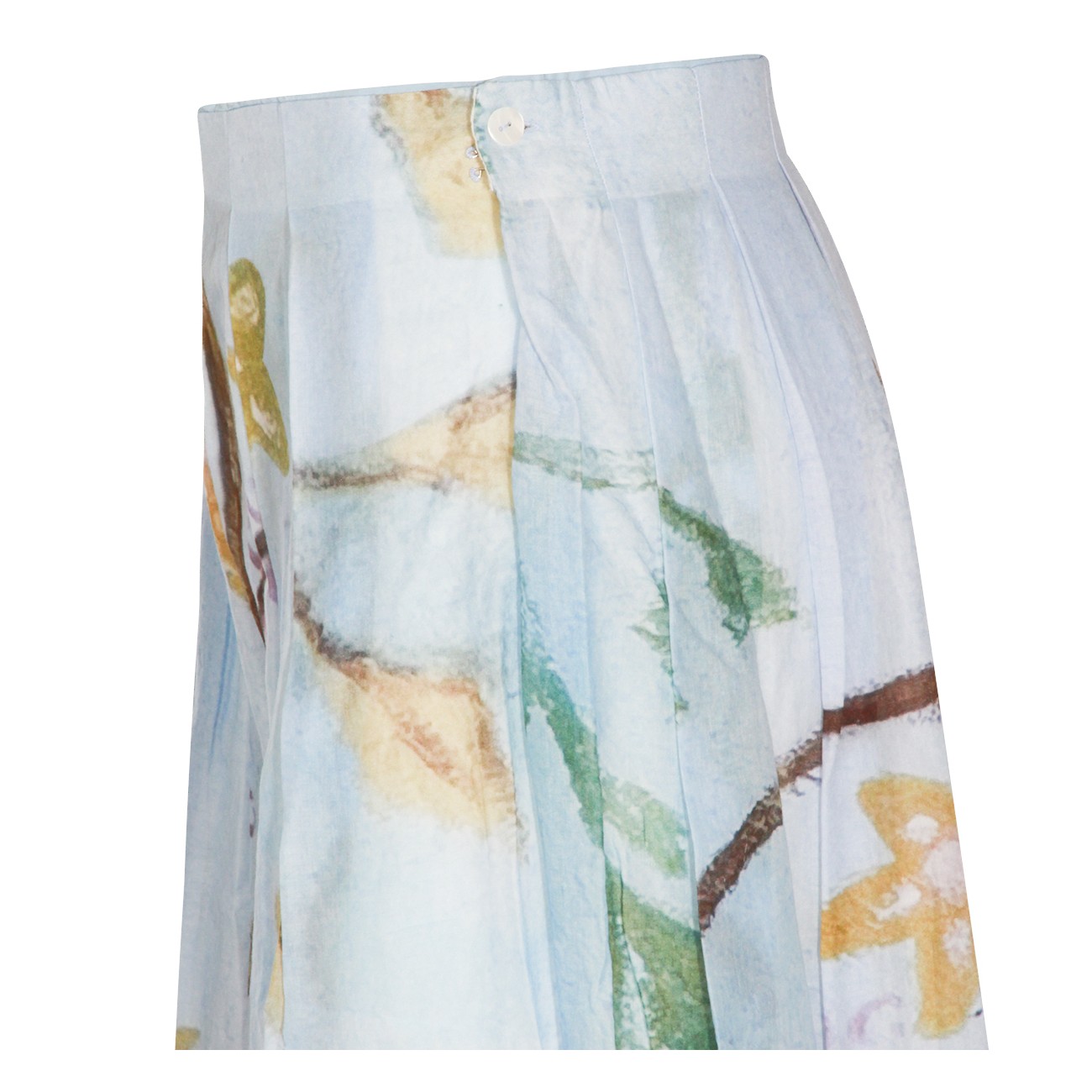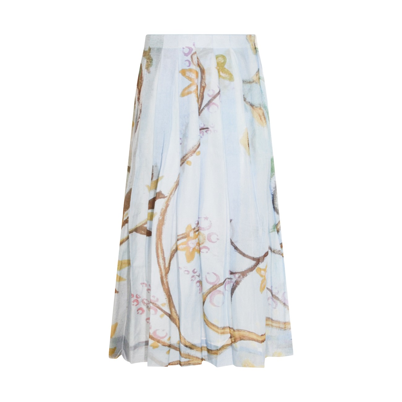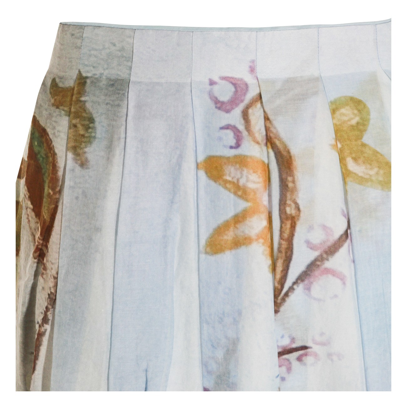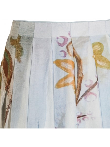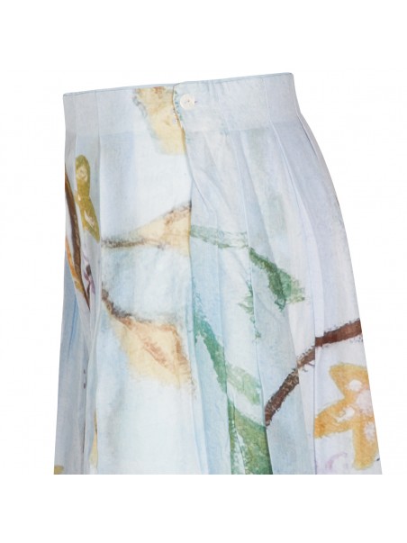 Light blue silk skirt from Talking Walls featuring lateral zip fastening, pleated skirt and print.
