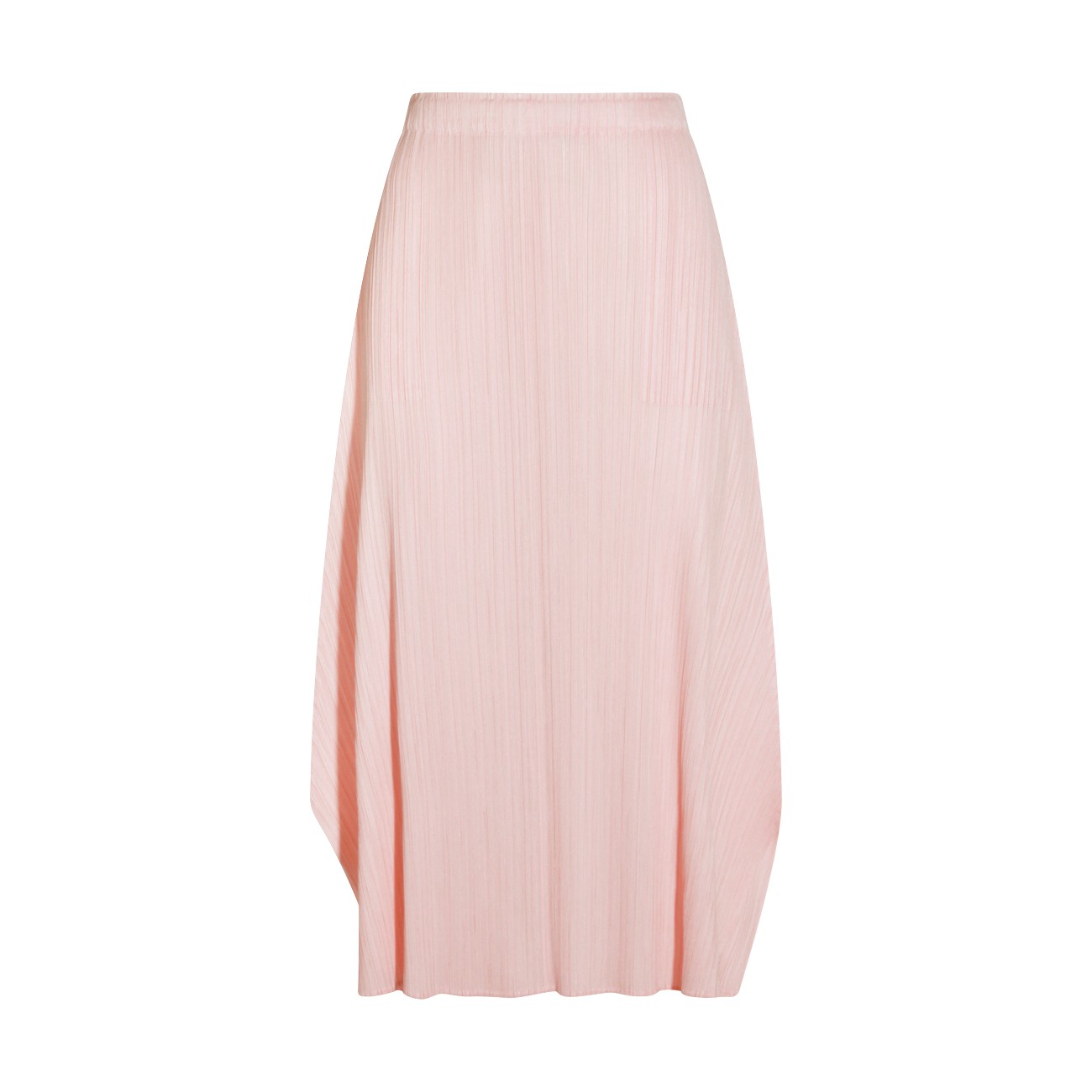 Light pink skirt from Pleats Please Issey Miyake featuring high elasticated waistband, pleated and soft vestibility.