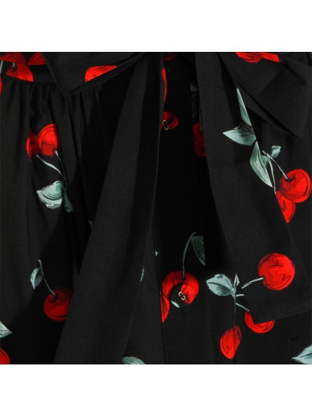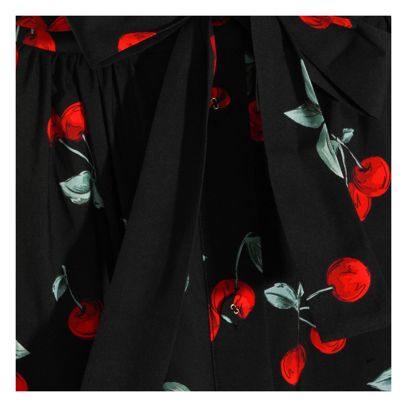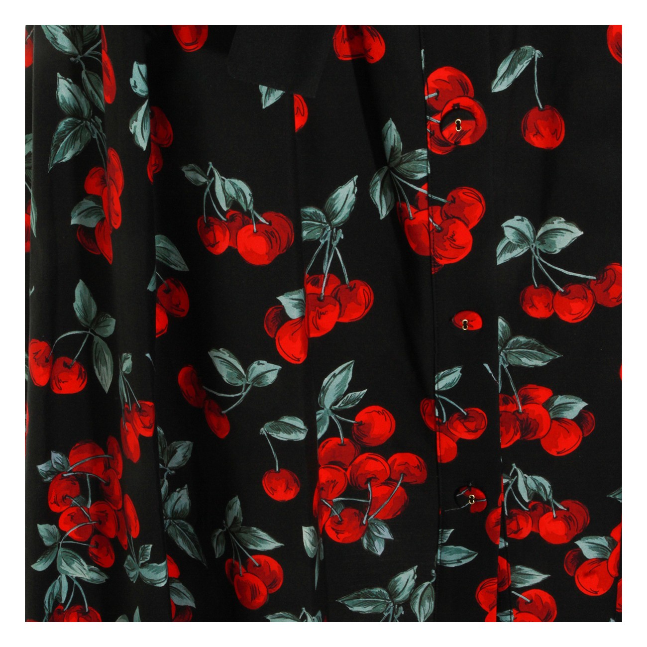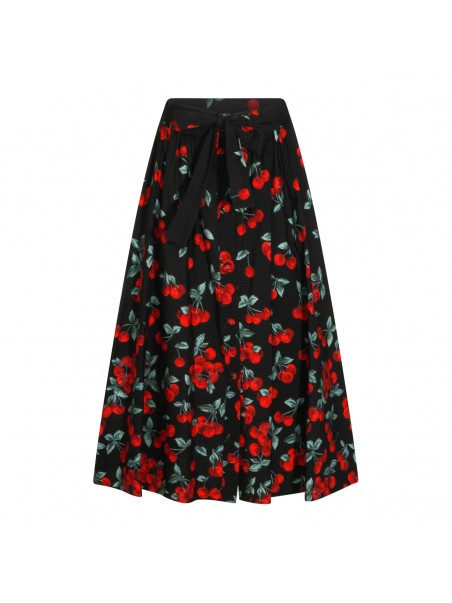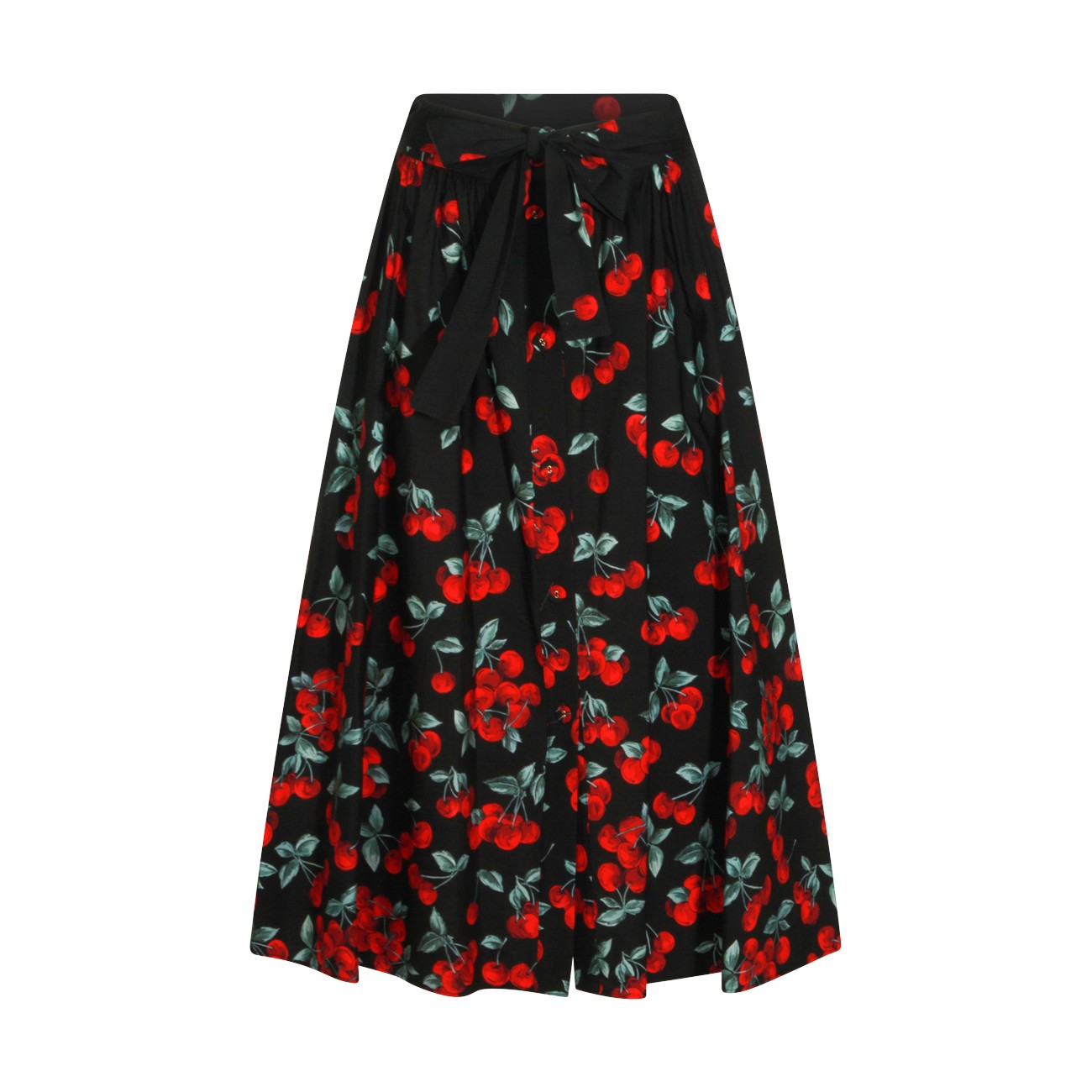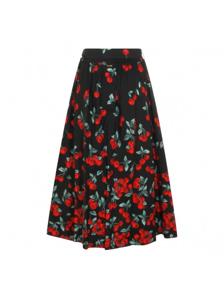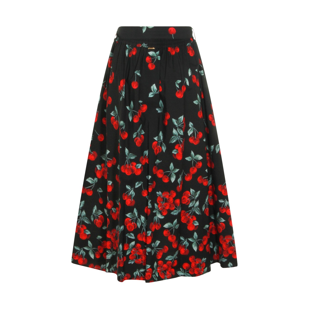 Black and red cotton skirt from Twinset featuring high waist, all-over cherries pattern, pleated and midi lenght.