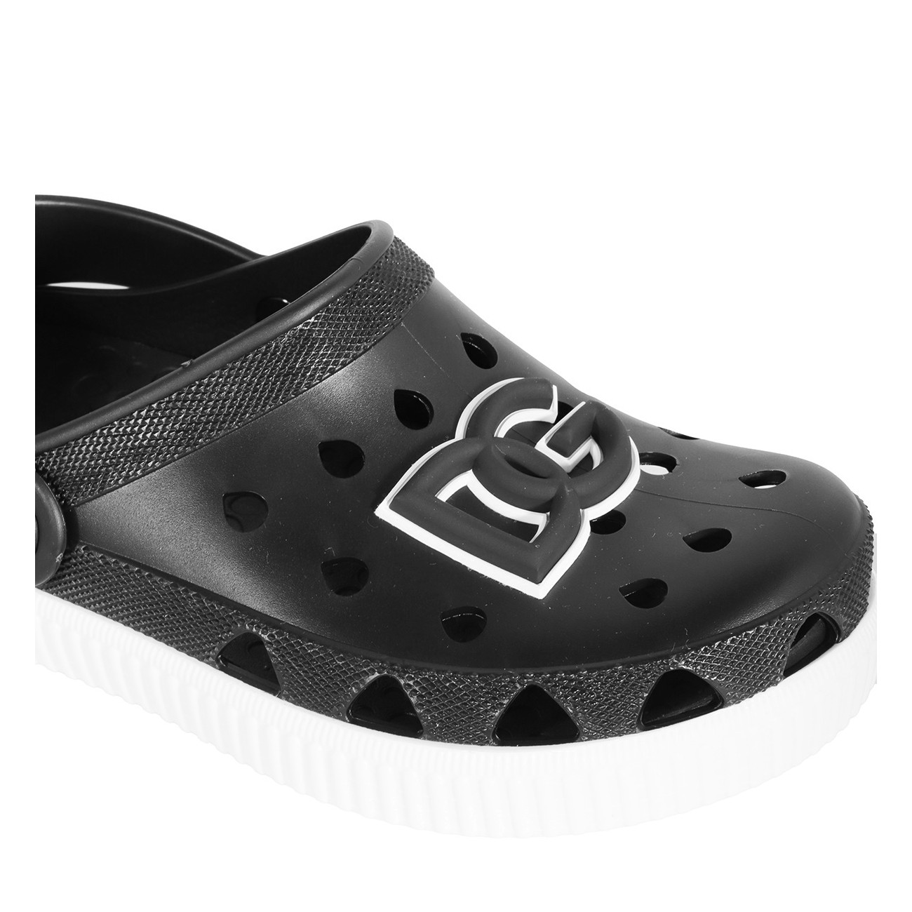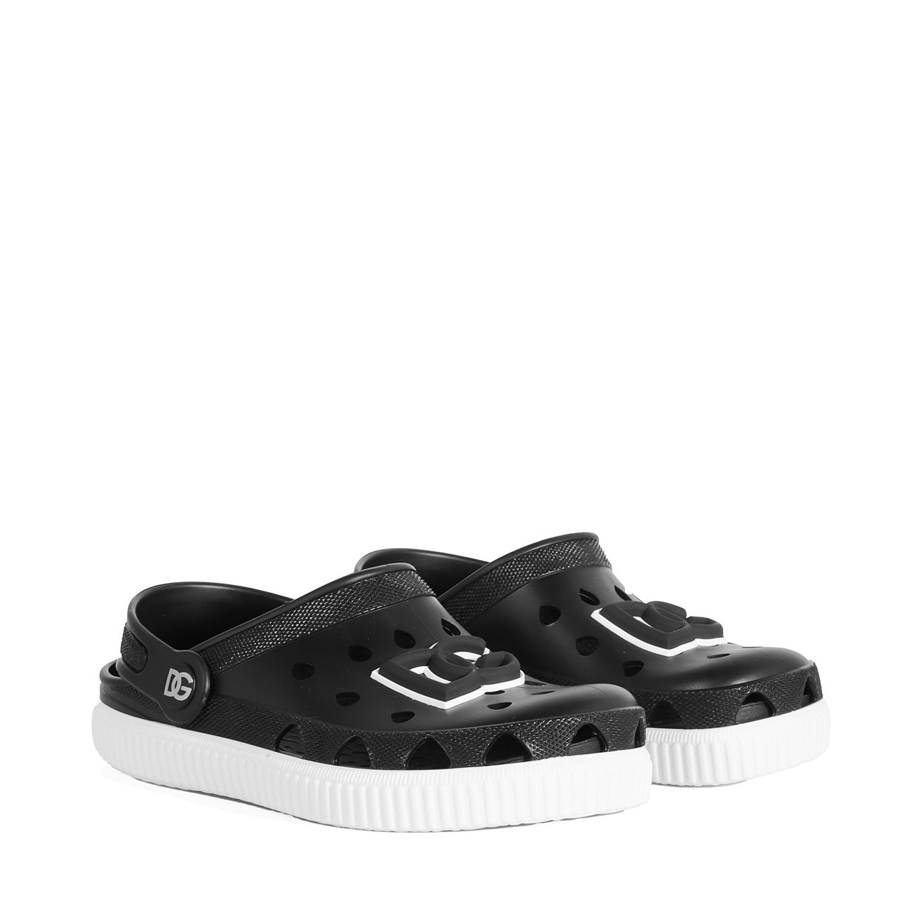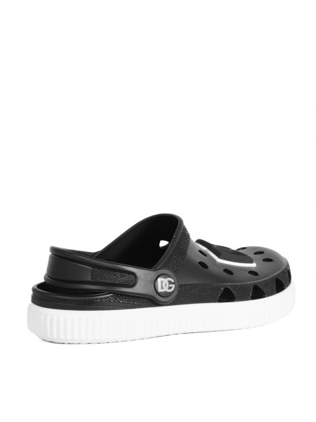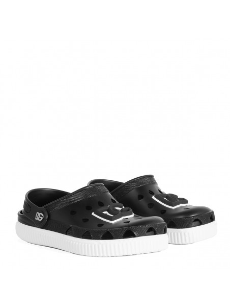 Black sandal from Dolce & Gabbana featuring round toe, logo patch, rubber sole and comfortable fit