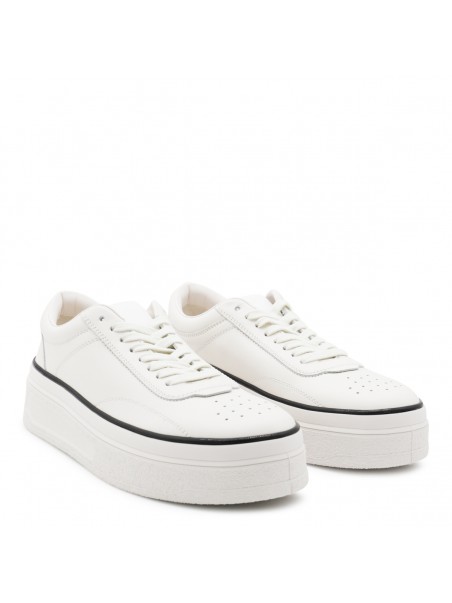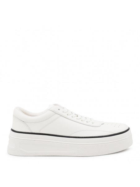 White leather sneakers from Jil Sander featuring rubber sole, cotton laces, contrasting details and round toe.