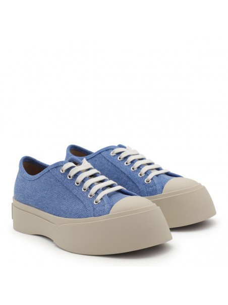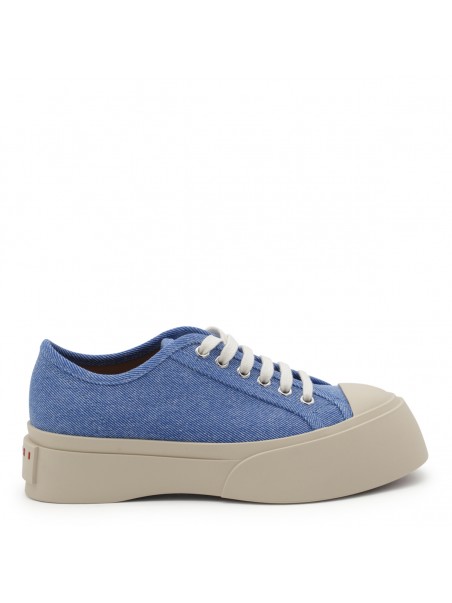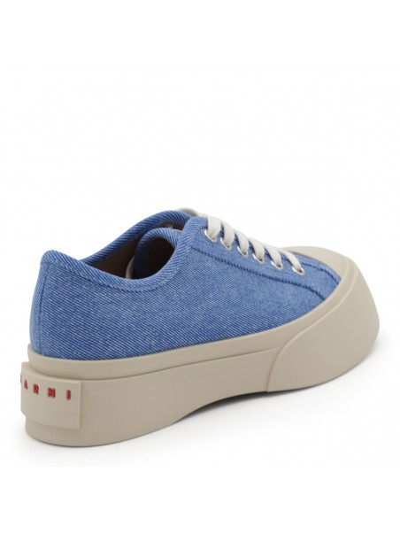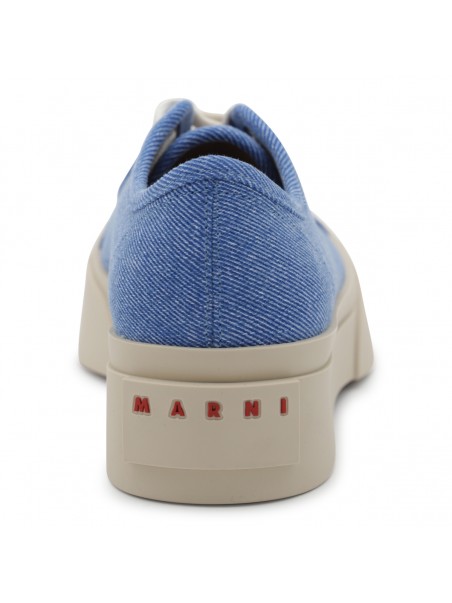 Blue leather sneakers from Marni featuring round toe, cotton laces fastening, back logo and oversize sole.