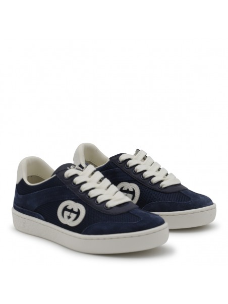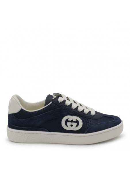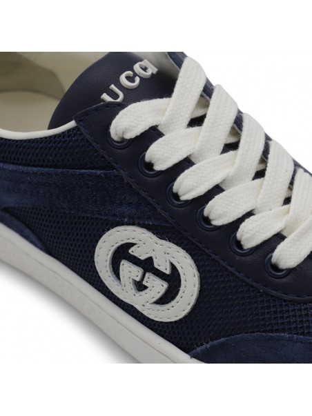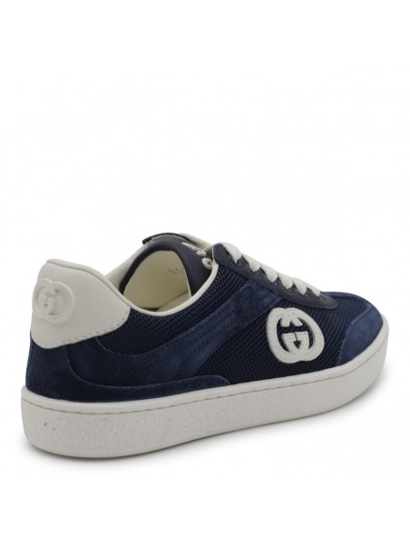 Blue sneakers from Gucci featuring round toe, cotton laces, lateral logo and leather sole.