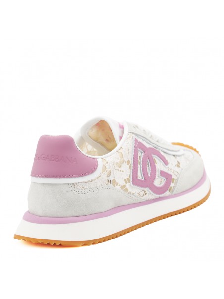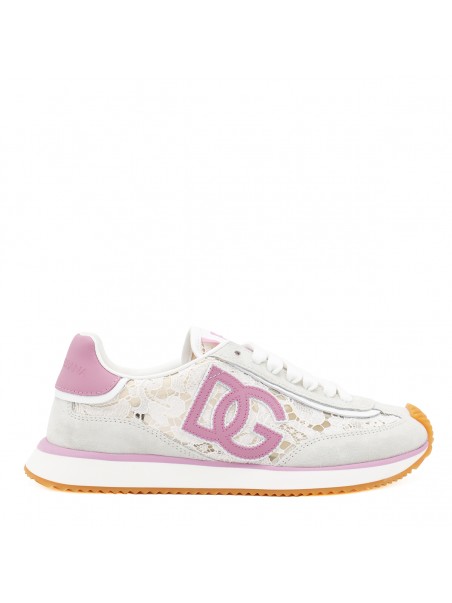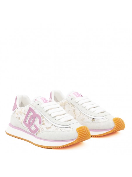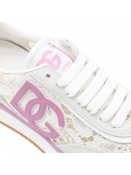 White and pink DG Cushion sneakers from Dolce & Gabbana featuring round toe, cotton laces fastening, floral embroidered details, crossed logo and ultra-light sole.