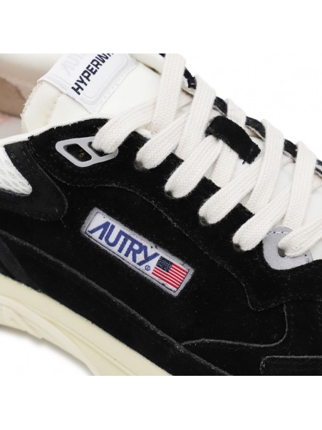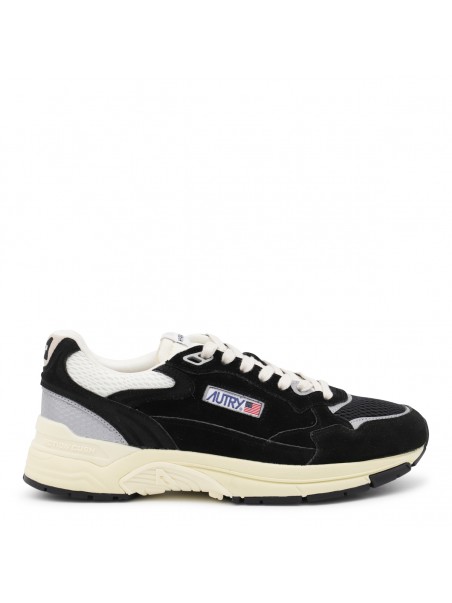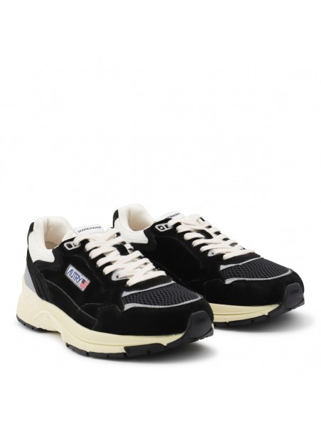 Black leather Hyperway sneakers from Autry featuring round toe, lace-up fastening, lateral logo, suede details, rubber sole and branded tongue.