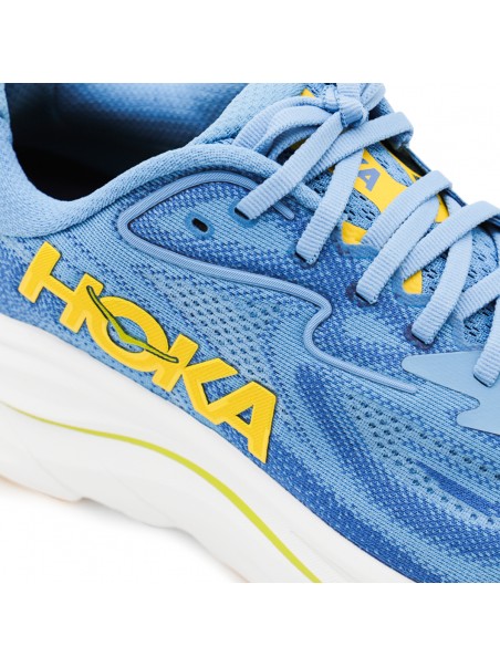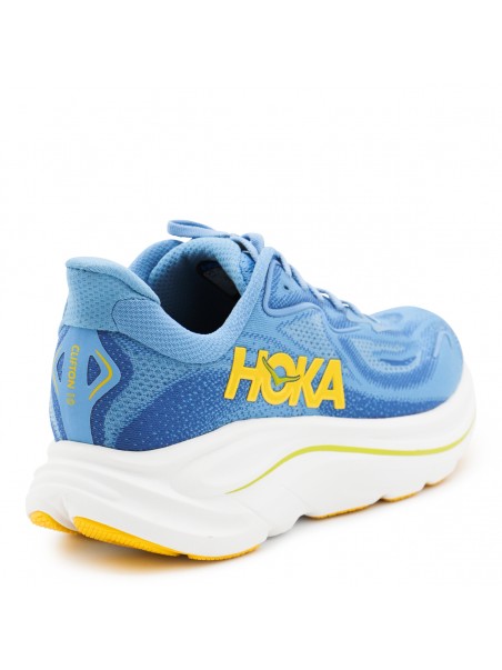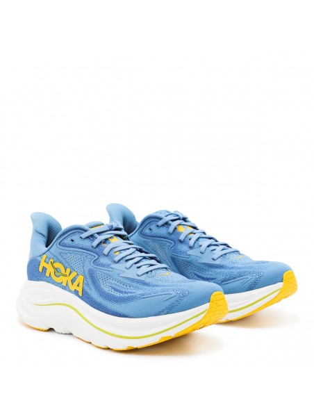 Blue Clifton 10 sneakers from Hoka One One featuring round toe, laces fastening, oversize sole and logo.