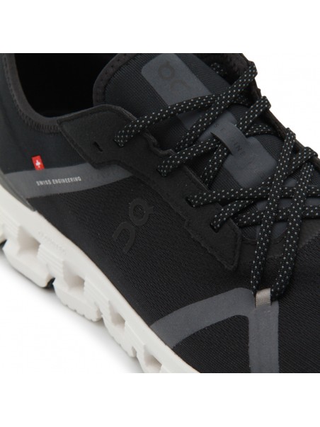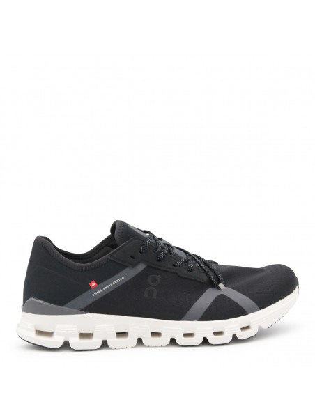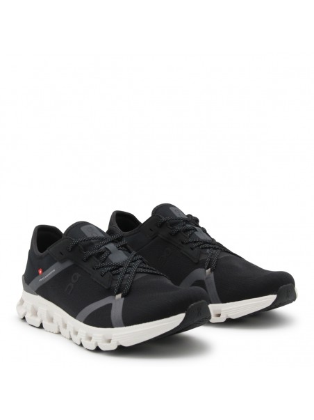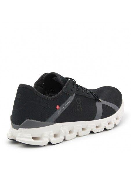Black Cloud X4 sneakers from ON featuring rubber sole, lace up closure, logo details and mesh inserts.
