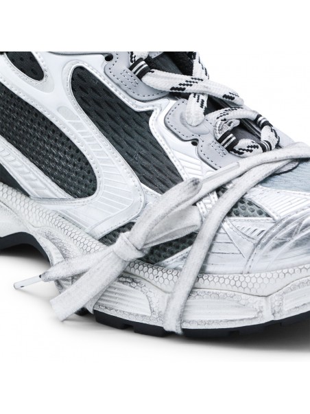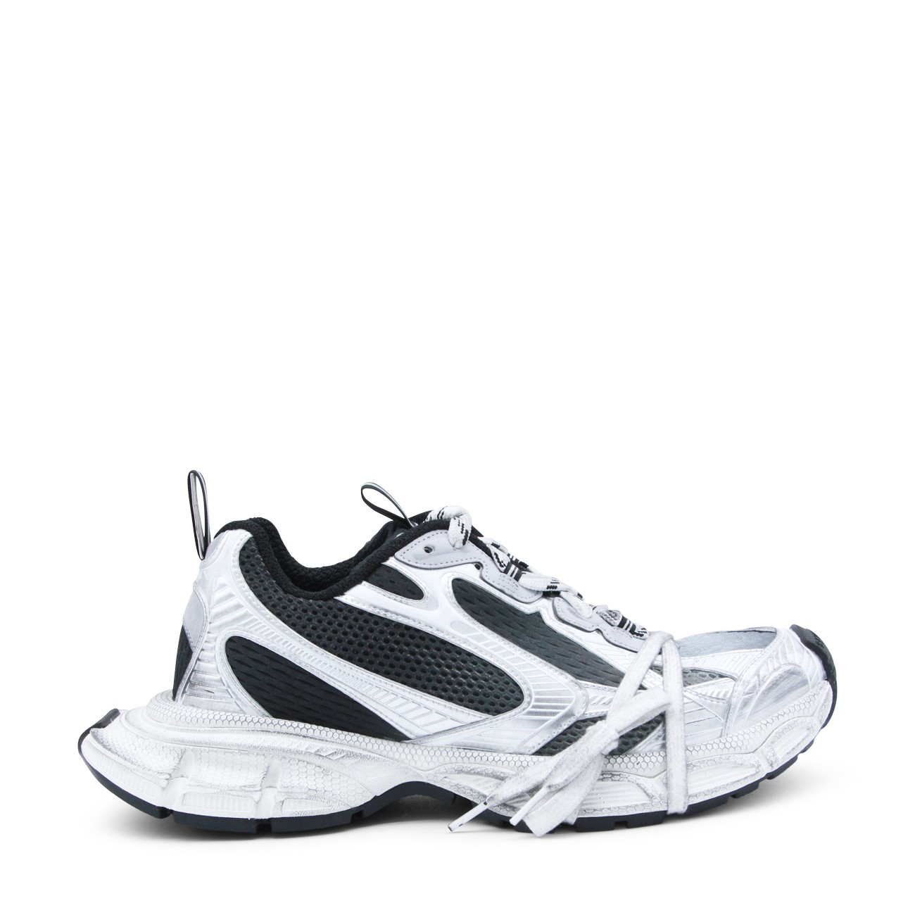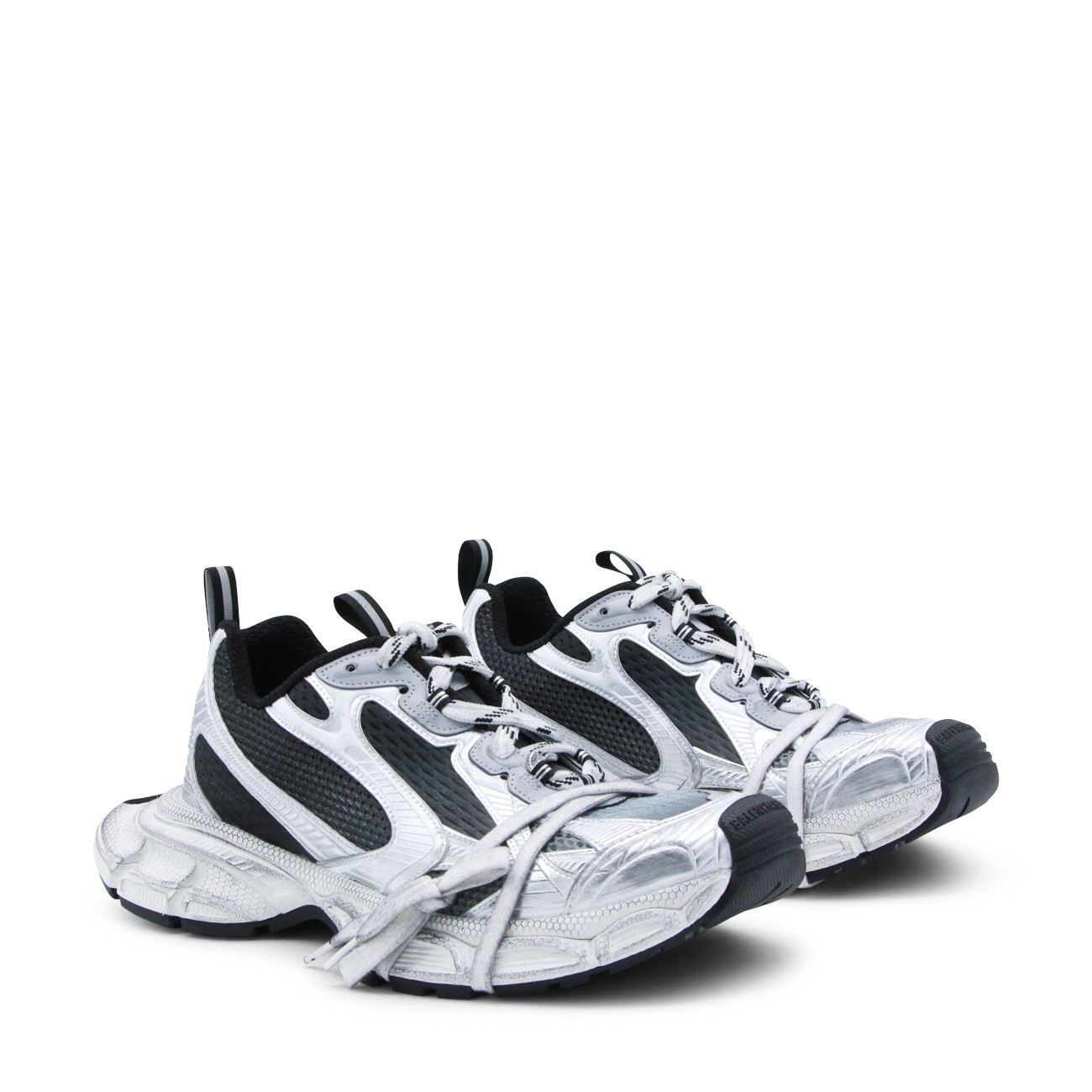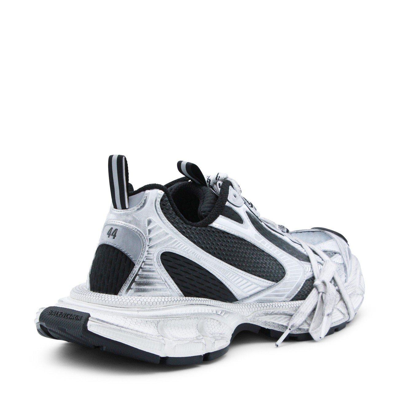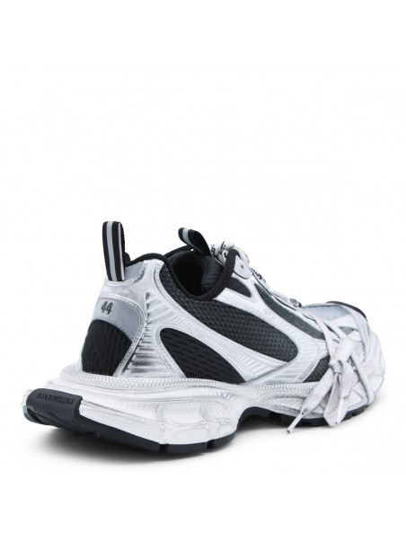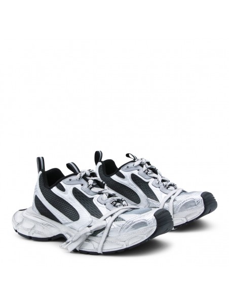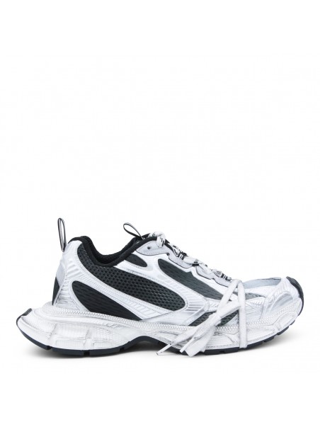 White and black 3XL Gradient sneakers from Balenciaga featuring worn effect, logo on the toe, round toe, laces fastening, reflective details and rubber sole.