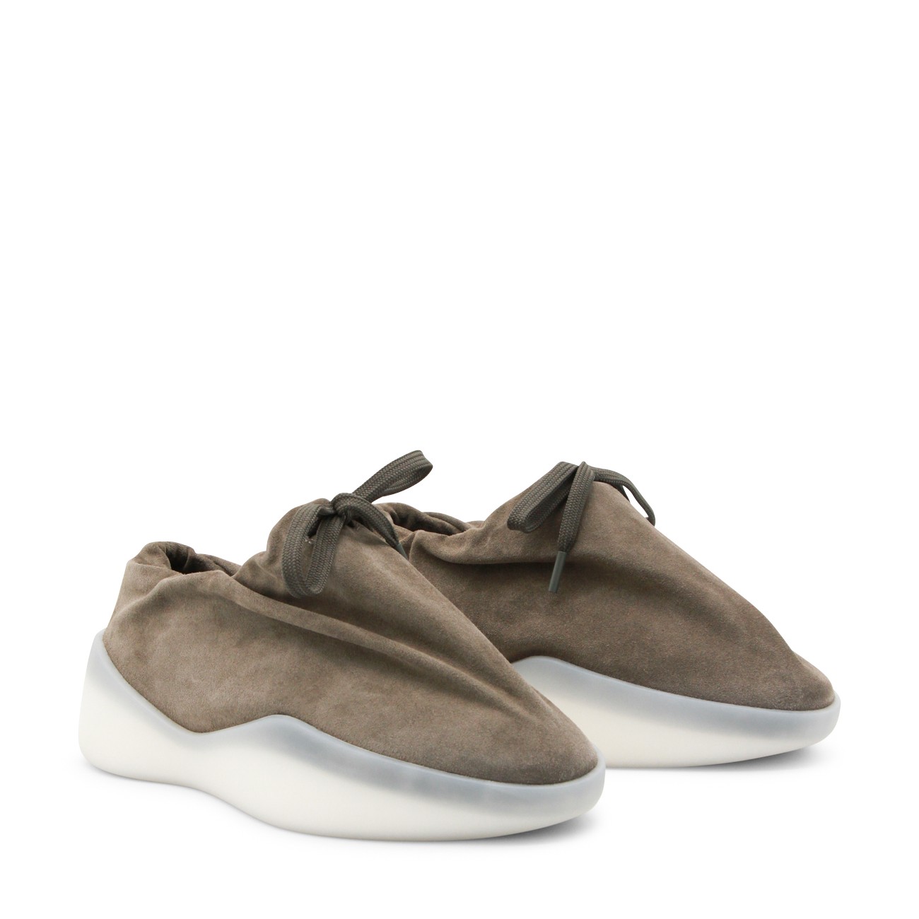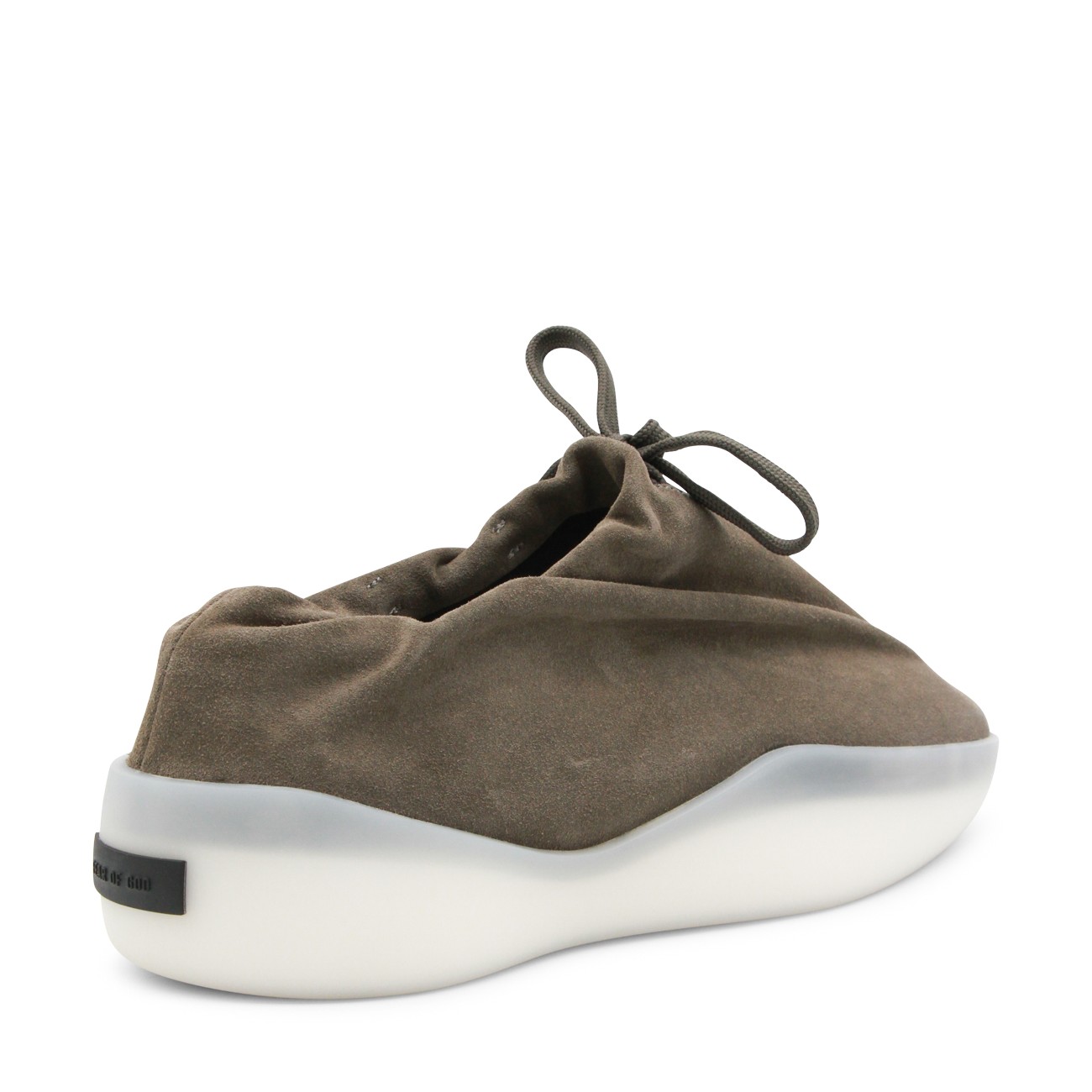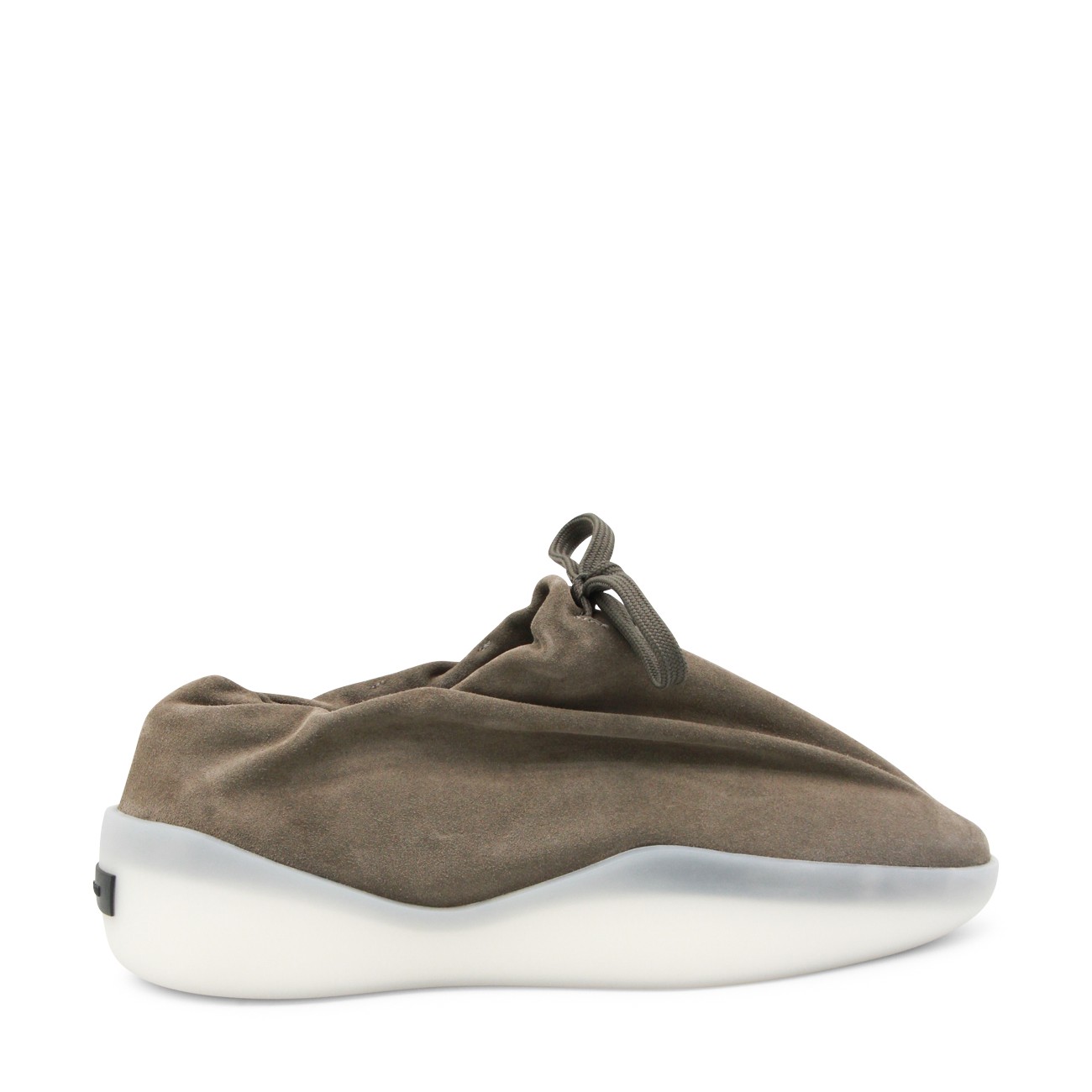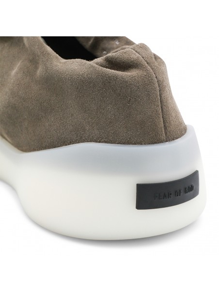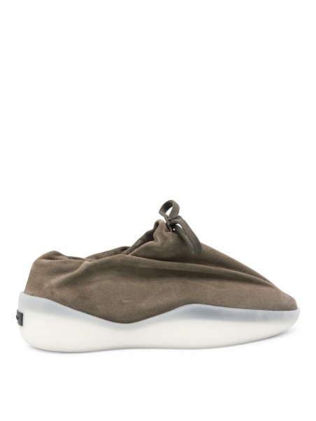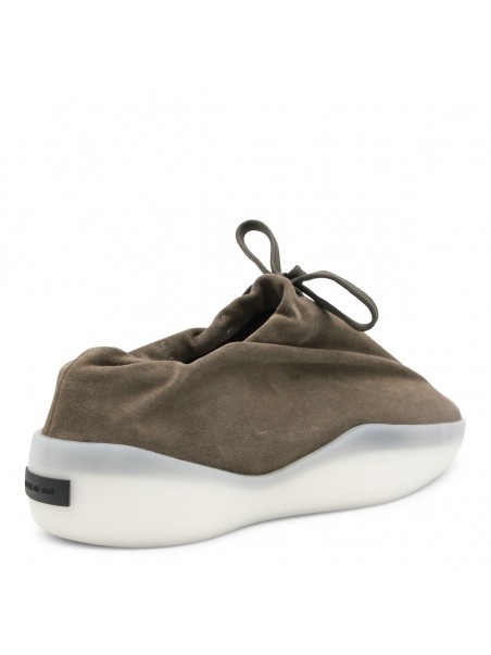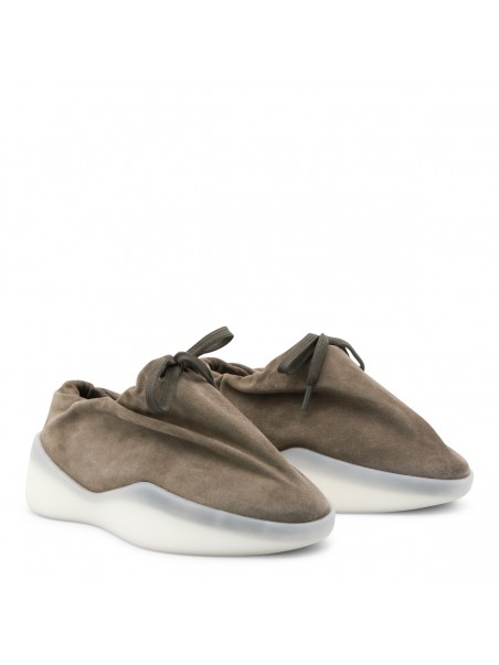 Willow leather moc runner from Fear Of God featuring pointed toe, laces fastening, black rubber logo and rubber sole.