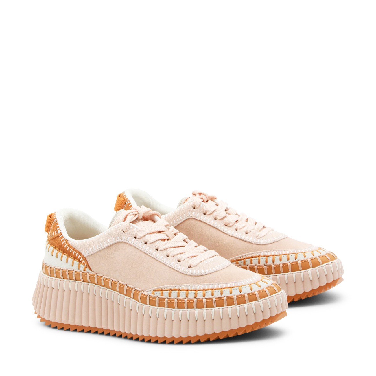 Maple pink sneakers from Chlofeaturing round toe, lace up fastening, stitching details and rubber sole.