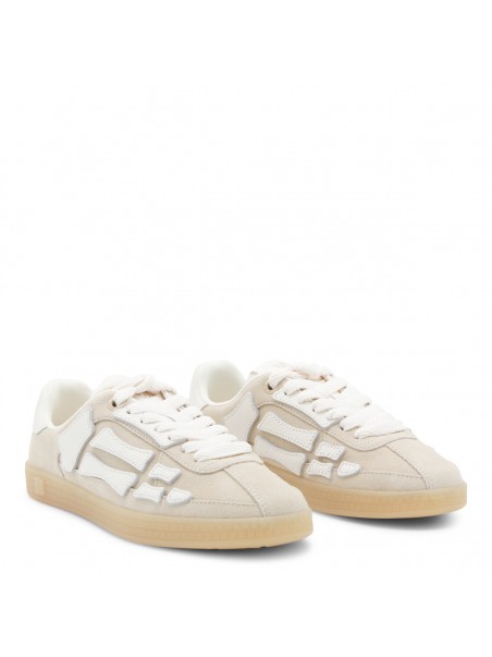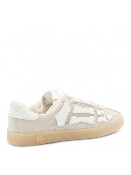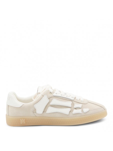 Beige leather sneakers from Amiri featuring round toe, lace-up fastening, lateral details and rubber sole.